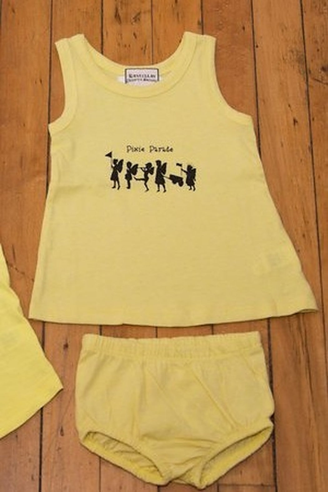 Pixie parade organic dress and diaper cover in yellow for infant. This organic style is a limited addition printed in small batches. All designs have been created by me and are printed by a local printer.