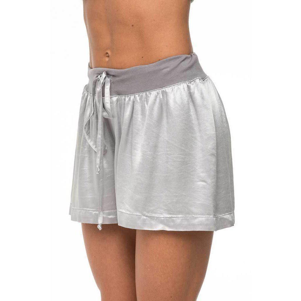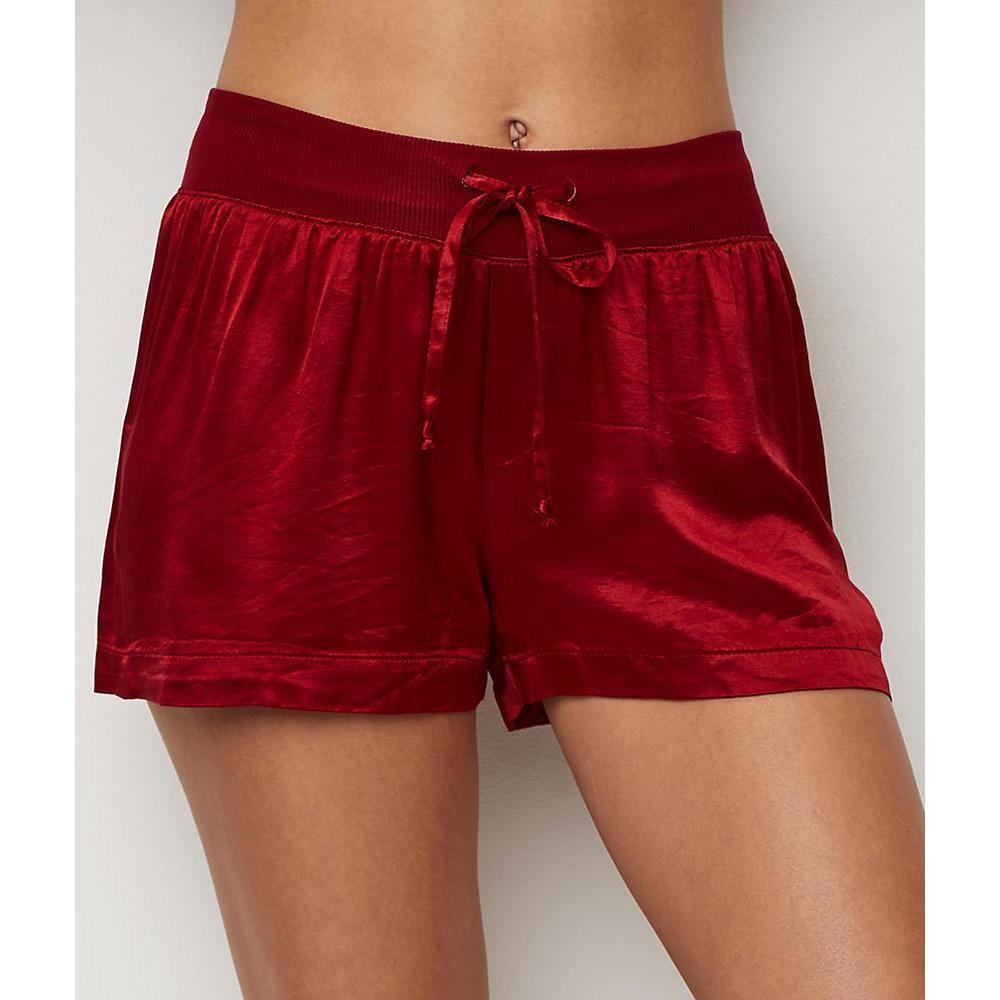 - Satin sleep short with elastic waistband featuring drawstring