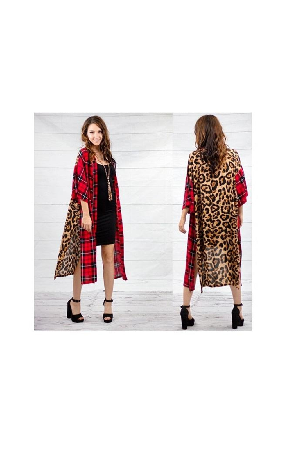 Plaid Buffalo And Leopard Print Duster / Kimono