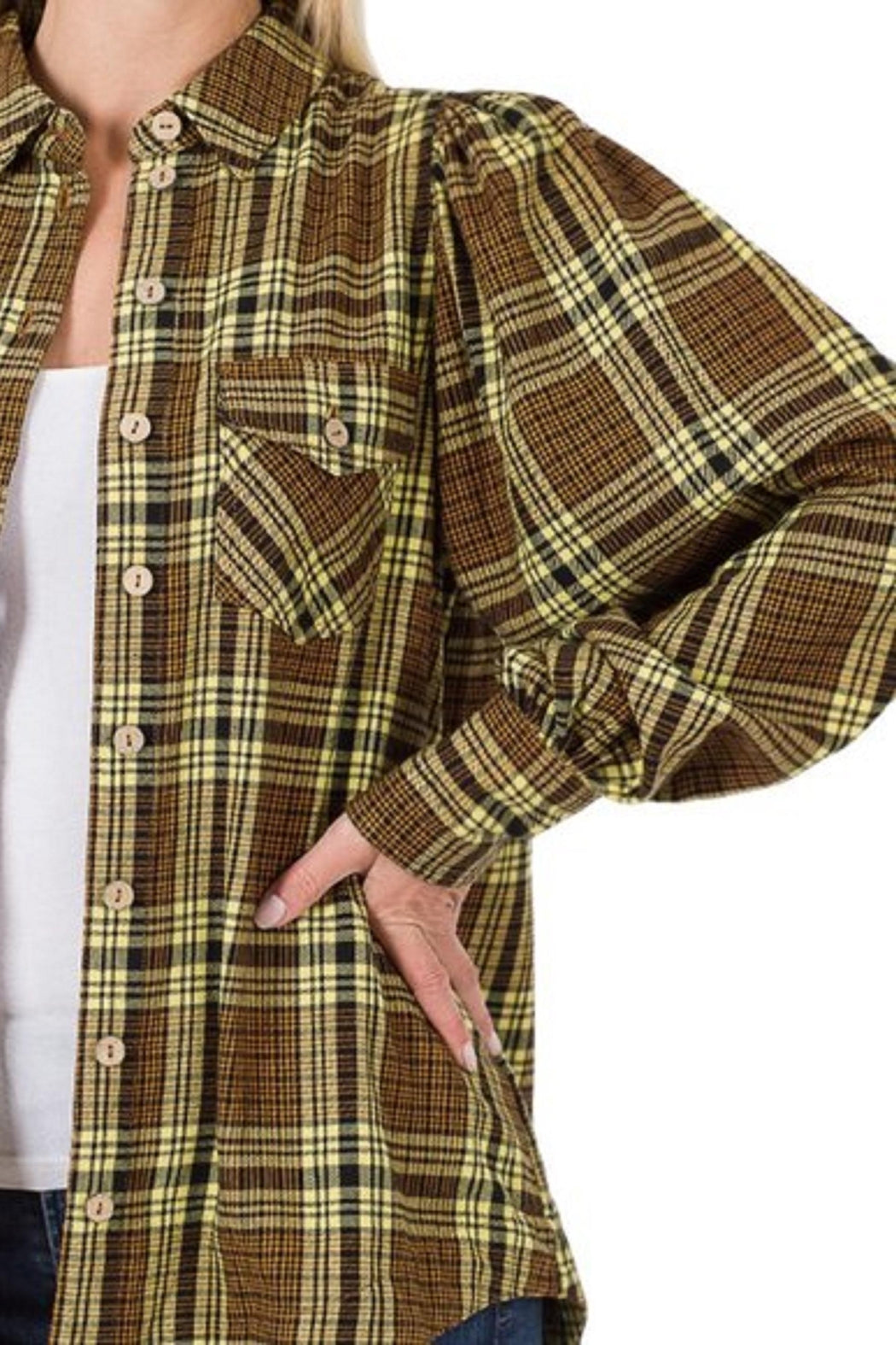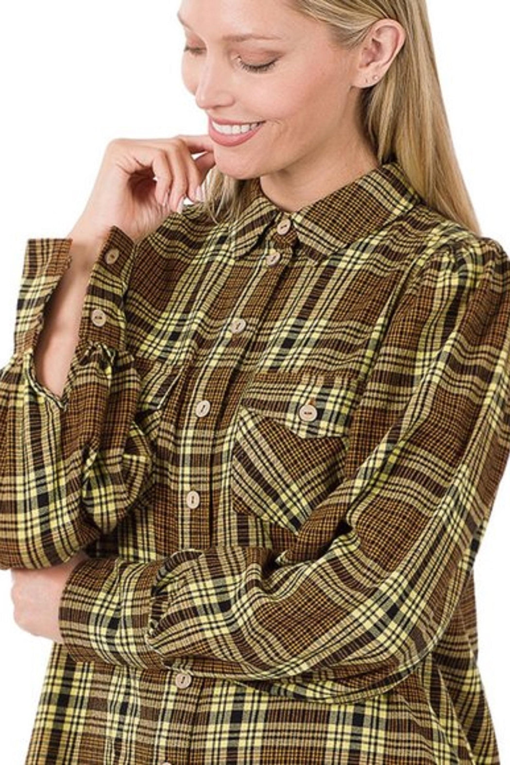Plaid Shirt for Women - Buttoned down check dress shirt Tuck it or UnTuck it