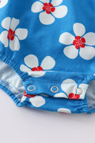 Platinum Blue & white floral print ruffle girl romper