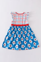 Platinum Blue & white floral print ruffle plaid dress