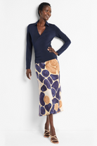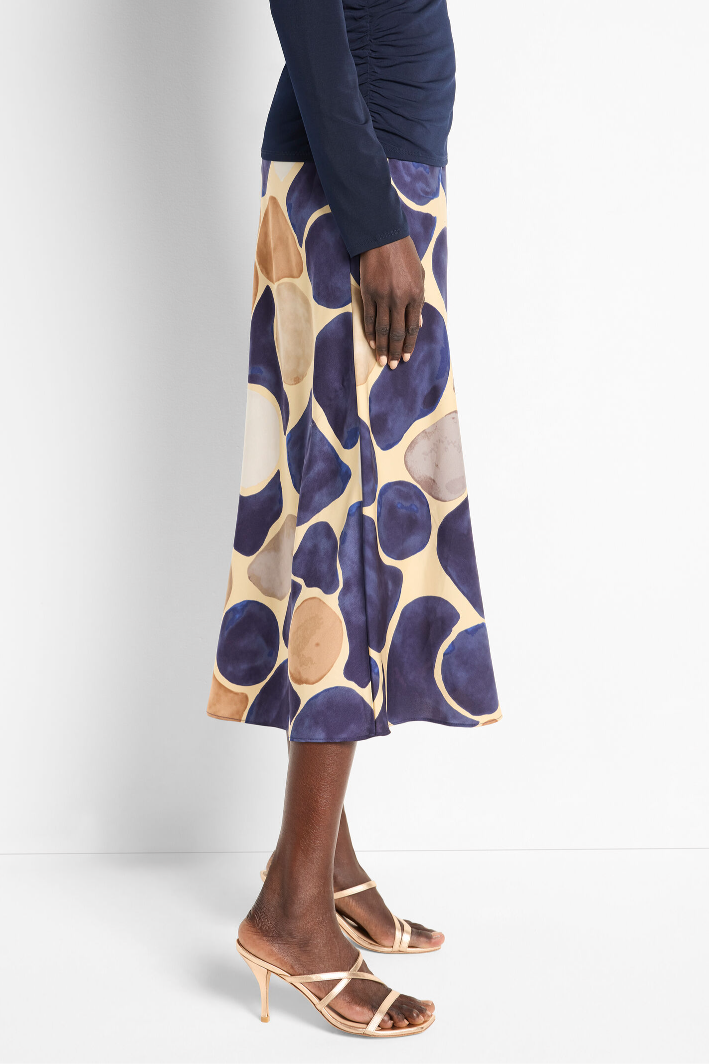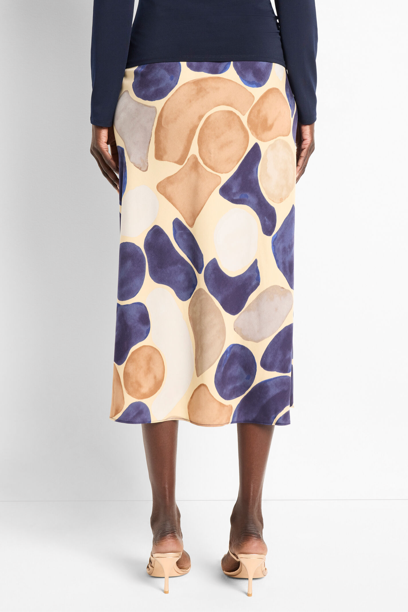 A sophisticated half-geo/half-organic print goes with your outfit flow: a perfectly versatile addition to your wardrobe you can dress up or down. Wear it with the matching top for a cute set or give it a twirl solo. Pull on and super easy with a stretchy, drapey feel that's totally sheer proof. Falls below the knee in a sleek slip silhouette.