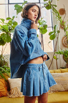 Update your denim collection with this playful Pleated Denim Mini Skirt! Featuring a low rise fit, this mini skirt is perfect for showing off your legs and adds a touch of fun to any outfit. The pleated design is both trendy and flattering, making this skirt a must-have for any fashion-forward wardrobe.