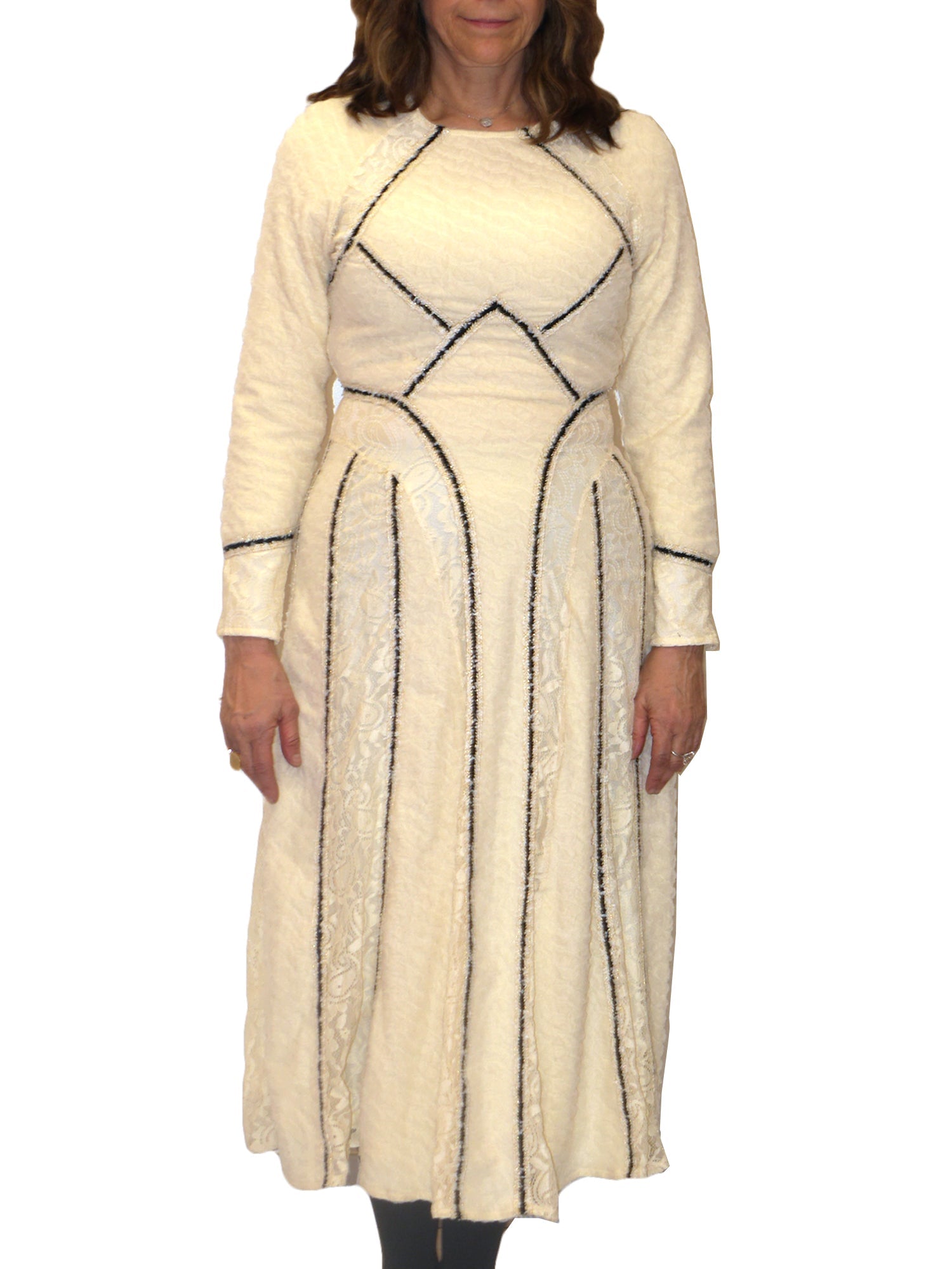 Quality Craftsmanship: Meticulously crafted with attention to detail, our Cream Lace Long Sleeve Midi Dress with Black Velvet Piping ensures durability and a luxurious feel. Enjoy the confidence that comes with wearing a well-crafted and stylish garment.