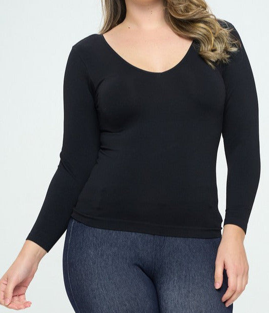Plus Size Seamless Reversible V-Neck Long Sleeve Top