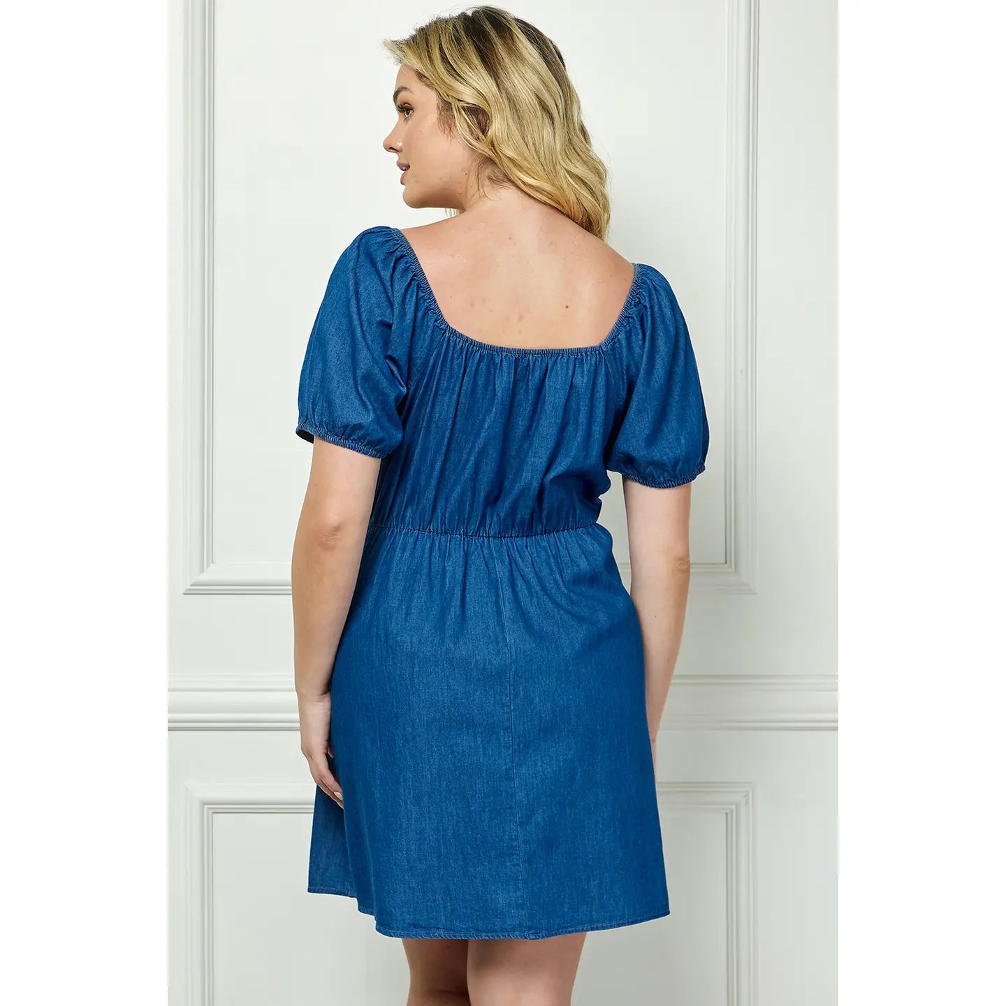 Step into elegance and on-trend style with our Square Neck Wrap Bubble Sleeve Dress. Embrace the chic sophistication of denim, set to reign as a trendsetter in the upcoming seasons. This dress boasts a contemporary square neckline and playful bubble sleeves, delivering a perfect blend of fashion-forward design and timeless denim appeal.