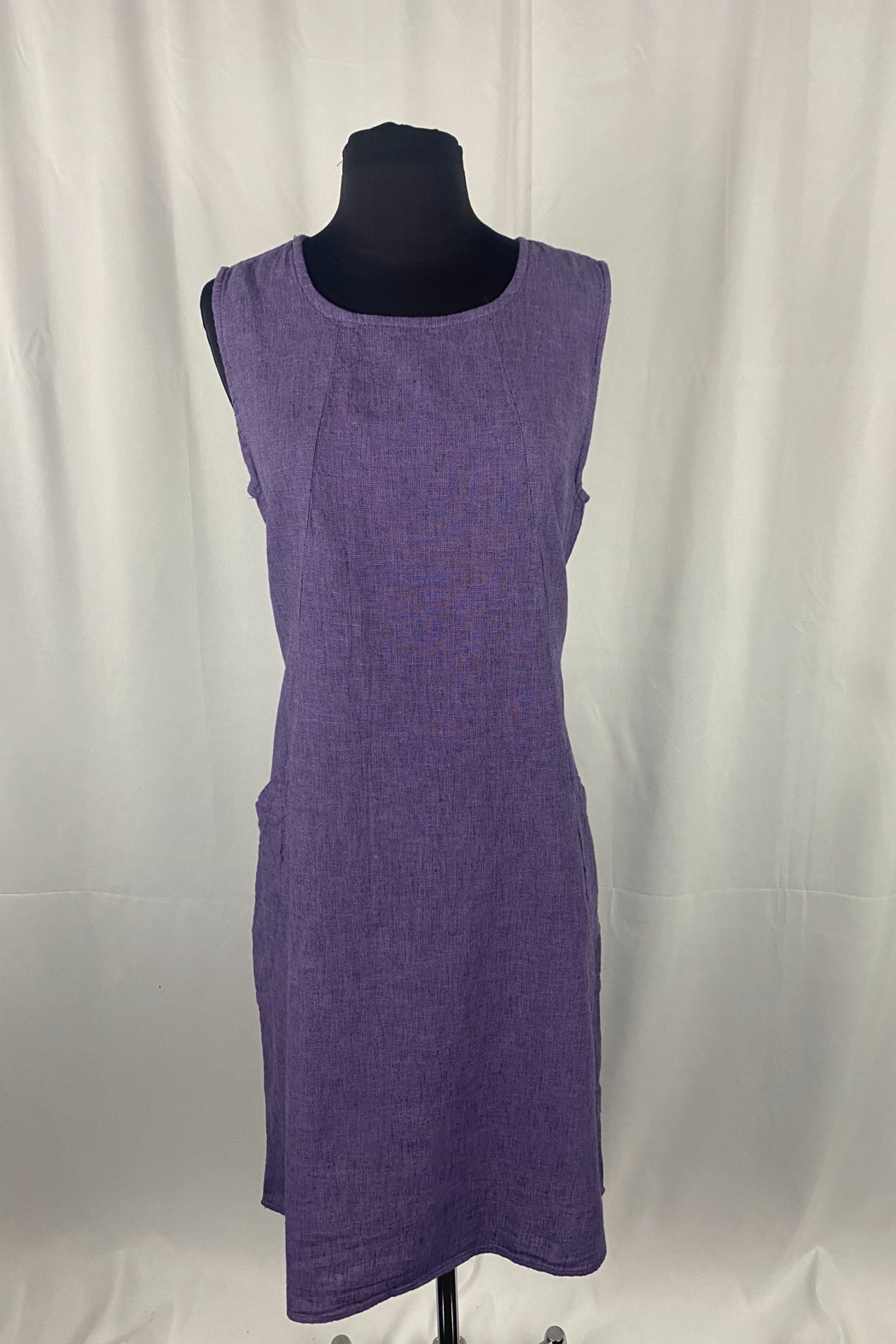 Midi sleeveless shirt with pockets and scoop neck