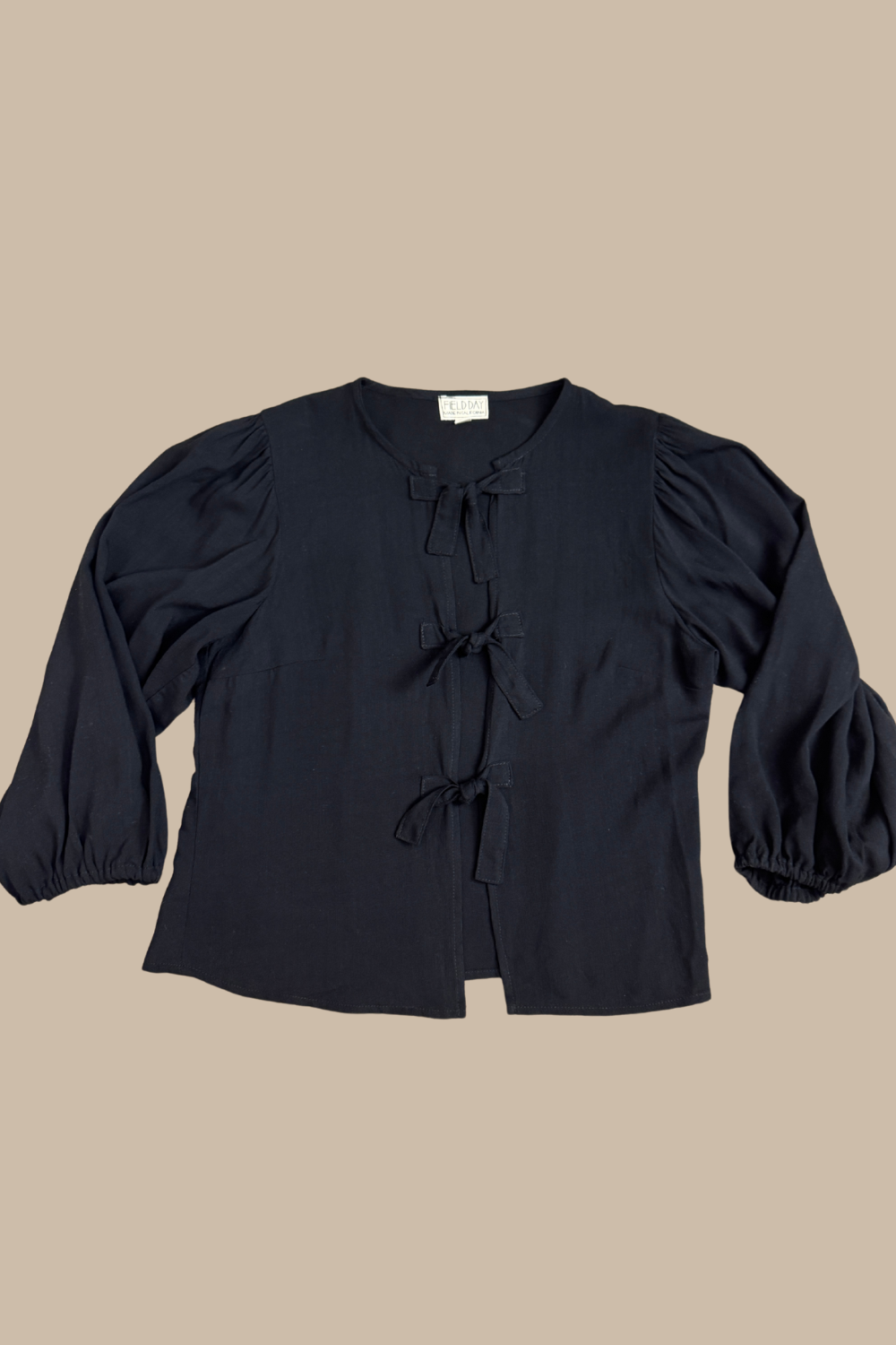 Made from a airy 100% deadstock black cotton fabric that is light and breezy