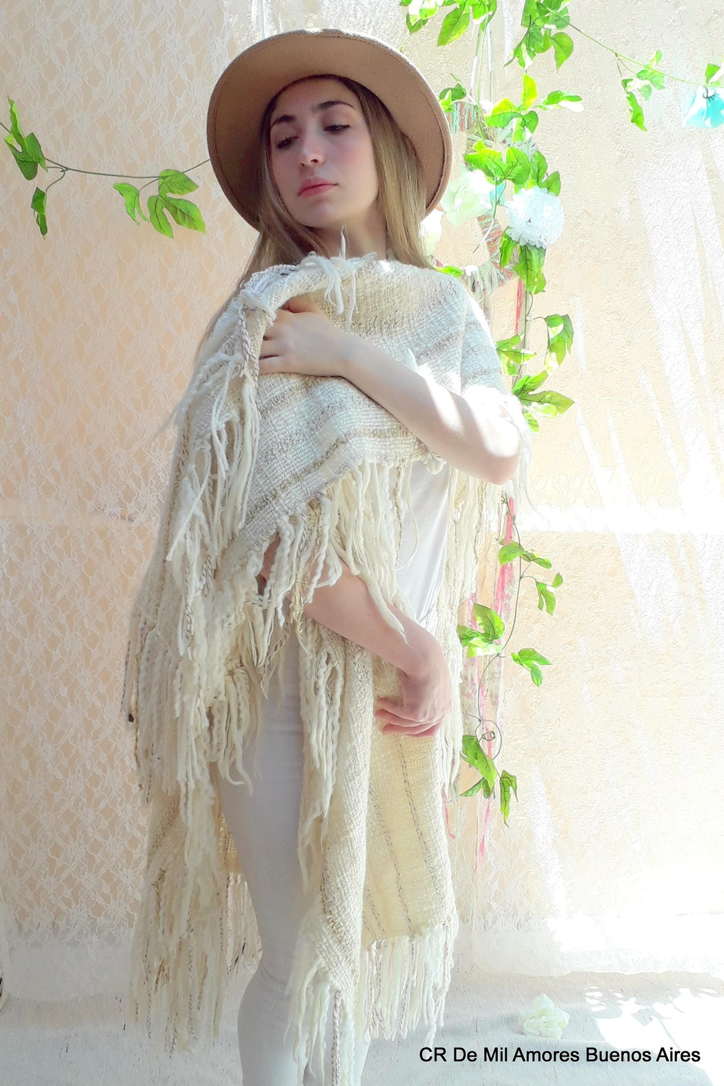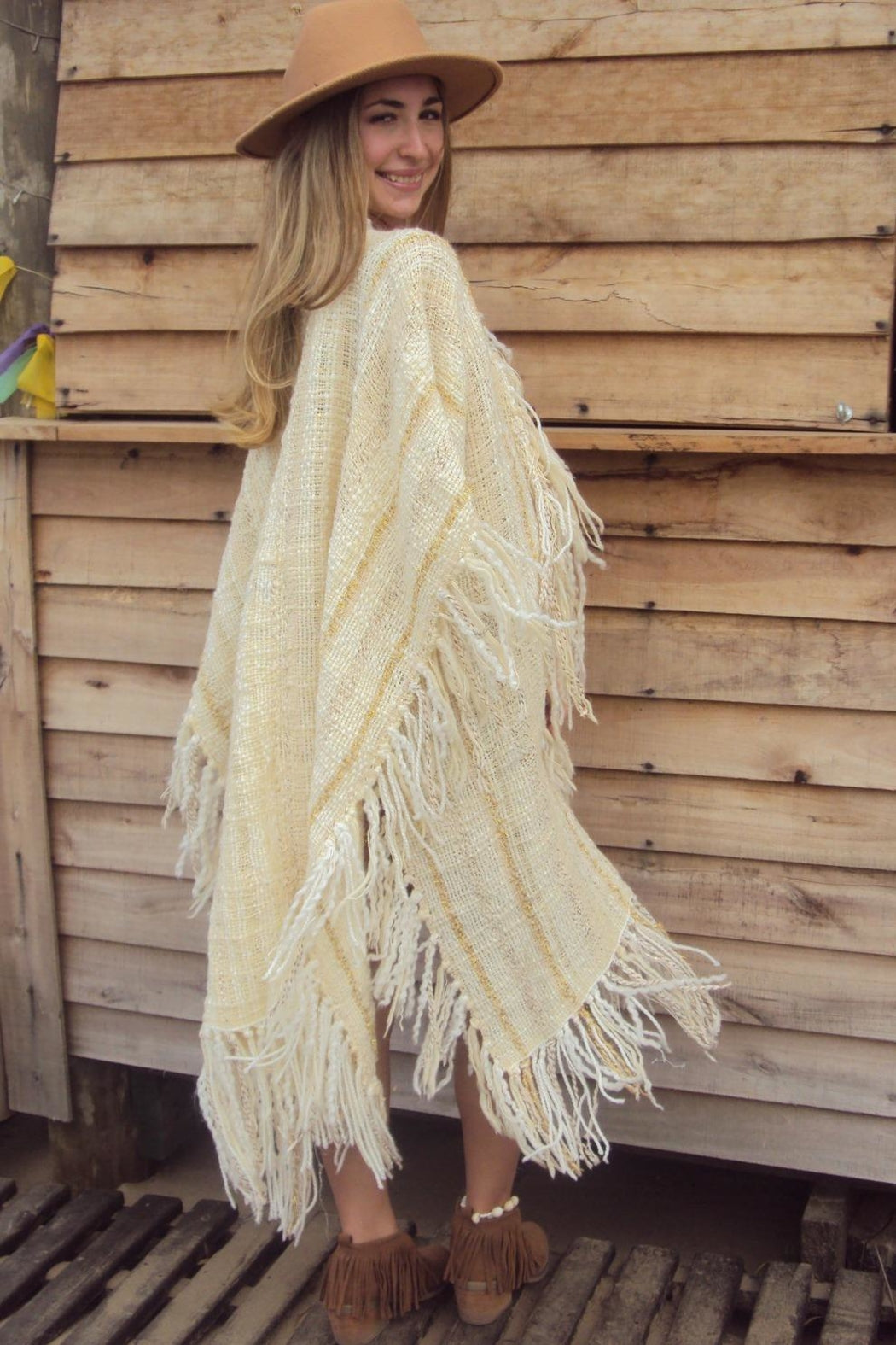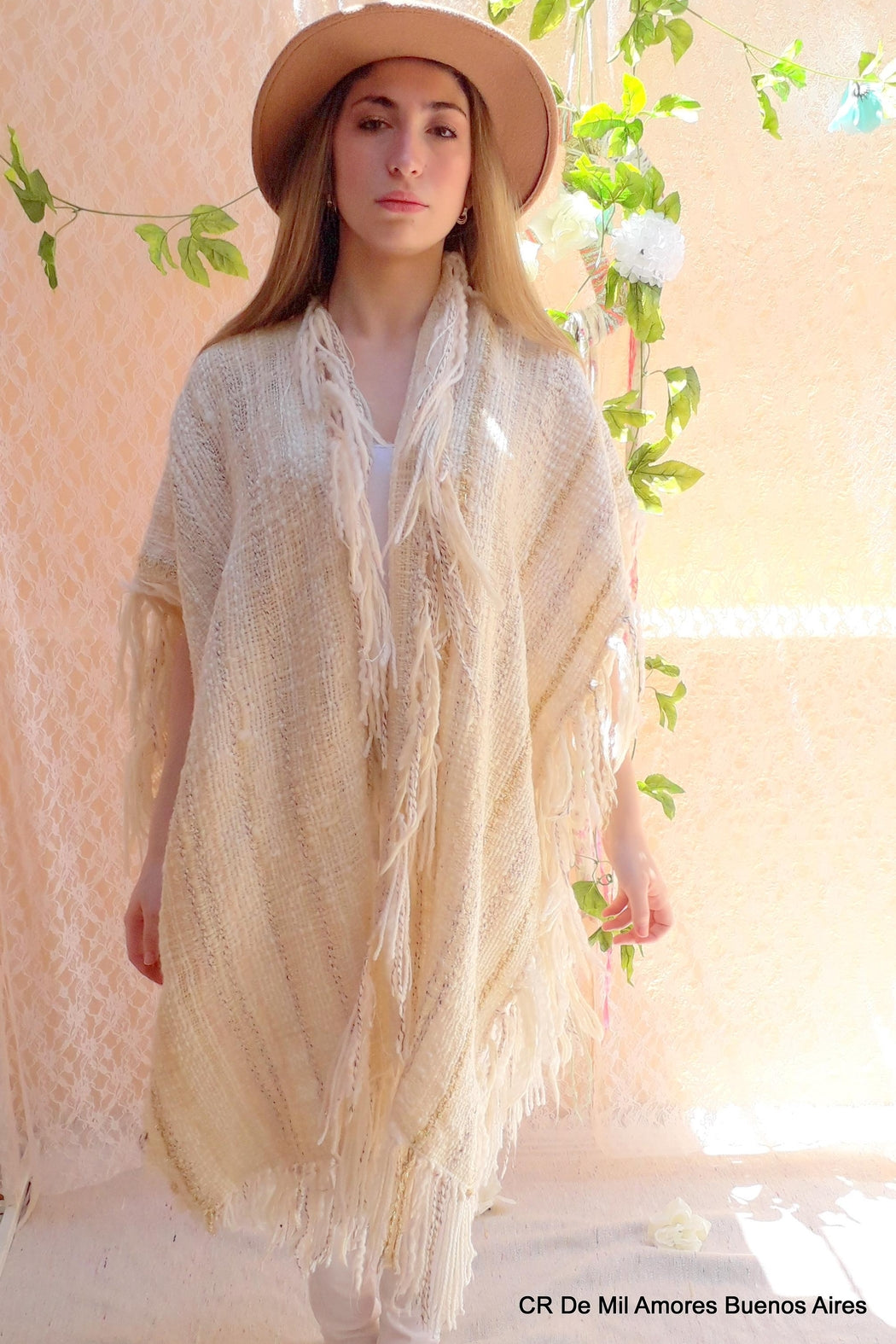 Poncho Ruana made by hands in loom with 100% patagonian merino wool tExure of luxury gold lurex . one of the bbeautiful and fashion limited edition ecology and sustainable piece of designe.