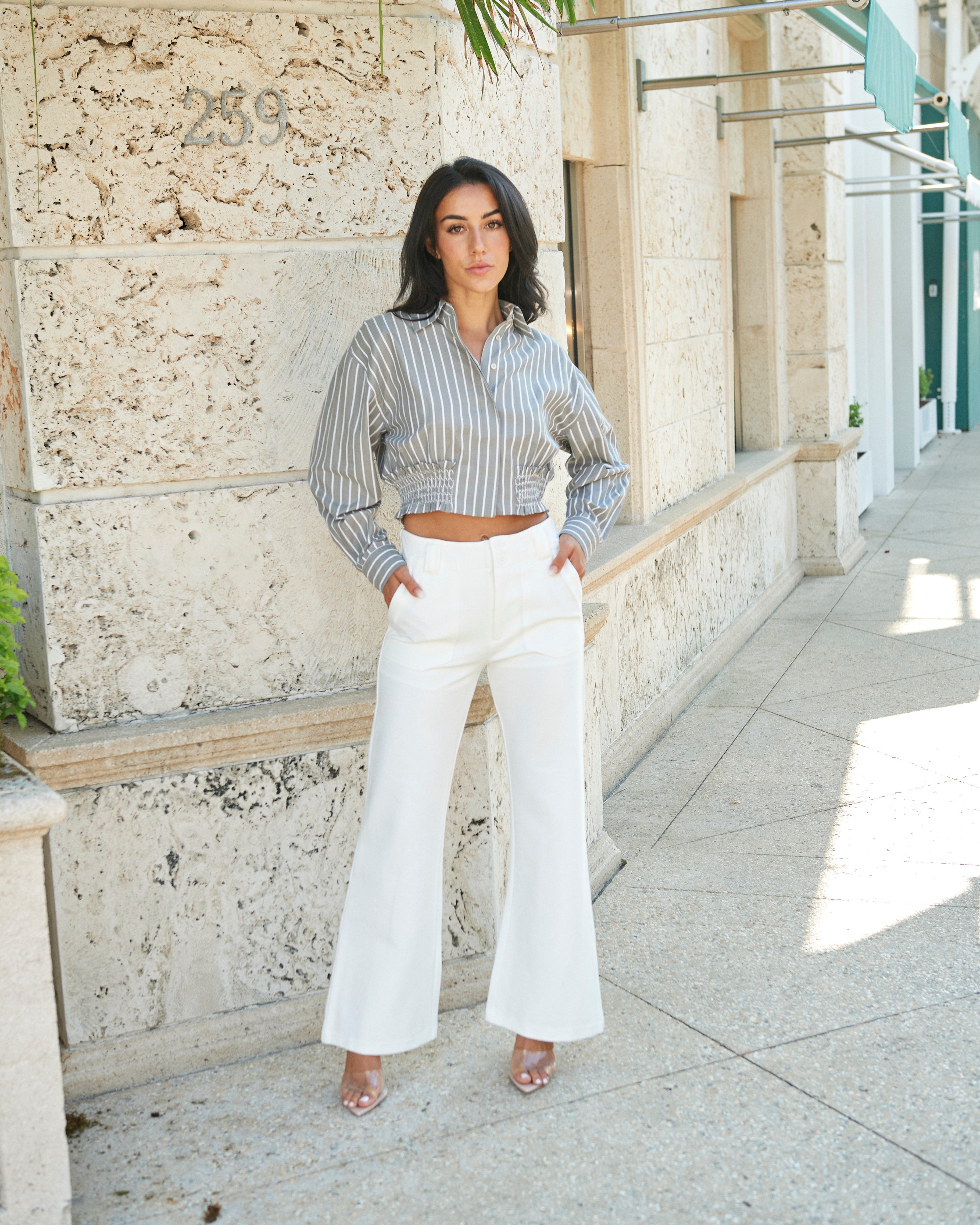Get ready to fall in love with our Ponte Flare Pants! These cute pants feature a flattering high waist and a flared leg, perfect for every day wear. With front pockets for added convenience, these pants will quickly become your go-to for any occasion.