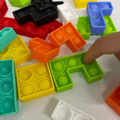 Bring fun and creativity wherever you go with the Pop It Fidget Puzzle Blocks! These lightweight, portable toys are perfect for keeping hands busy and minds engaged, whether you're traveling by car or plane, relaxing at the park, studying at school, or taking a break at the office. Made from high-quality, non-toxic silicone, these blocks are soft, durable, and washable, ensuring endless hours of safe play for kids, adults, and seniors alike. Use them as a sensory fidget toy, a brain-teasing puzzle, or a set of creative building blocks β the possibilities are endless! Available in sets of 16 or 24 pieces, they also make a thoughtful and entertaining gift for all ages. π§© Multi-Use Fun β Use as a fidget toy, a puzzle challenge, or creative building blocks.