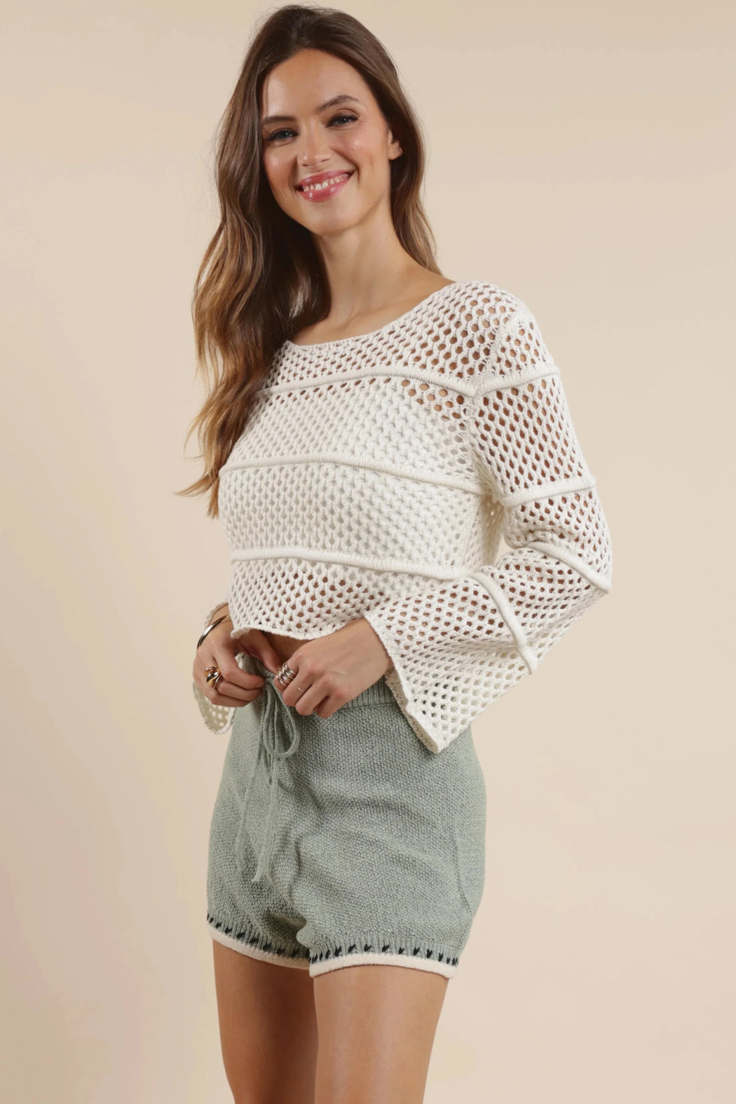 The Poppy Crochet Bell Sleeve Sweater is your go-to layering essential for breezy evenings and weekend getaways. Crafted with an open-knit design and romantic bell sleeves, it drapes effortlessly over dresses or tops, adding a touch of cozy texture while keeping your look effortlessly chic.