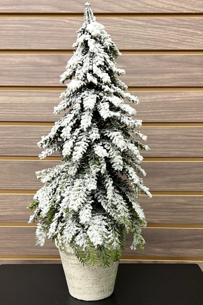 Potted Snowy Flocked Traditional Pine Artificial Christmas Tree