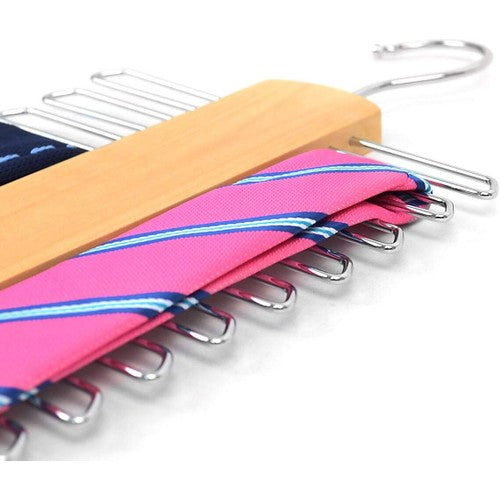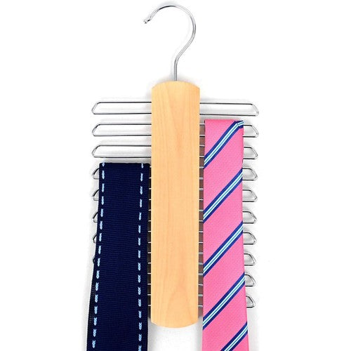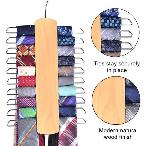 Premium Wooden Necktie and Belt Hanger with a Non-Slip Finish - 20 Hooks
