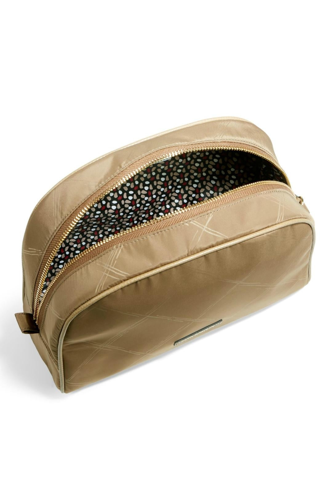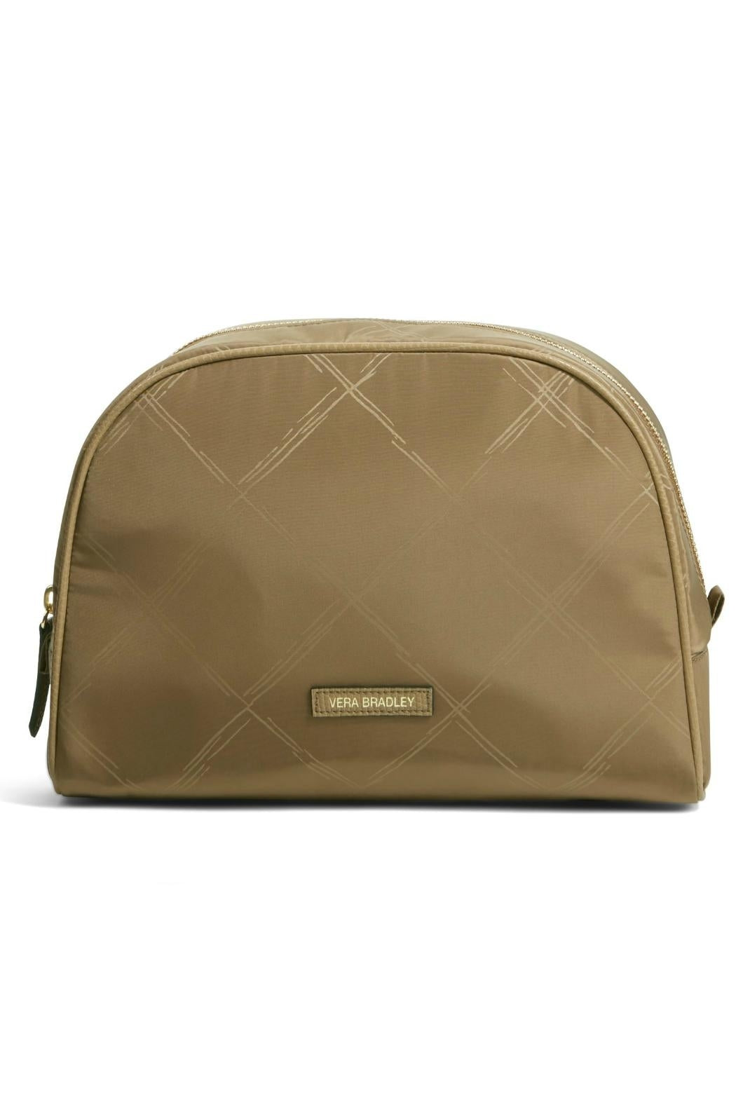 Here is the Vera Bradley Preppy Poly Large Cosmetic Case in Toast. This case holds bottles, brushes and all of your girl gear! Pretty and practical--that sounds like a winning combination to us. Preppy Poly fabrication is lightweight and soil and water repellent. Zip closure with gold tone hardware and signature poly twill print lining. Spot clean. Find other Preppy Poly accessories on the "Mimi' Gift Gallery" boutique page. --------------------------- Dimensions: 10" wide x 7 ¼" high x 3 ¾" deep.