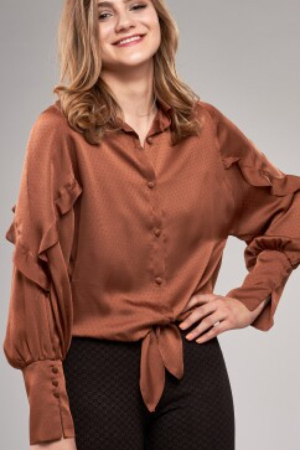 Soft ruffle sleeve trim