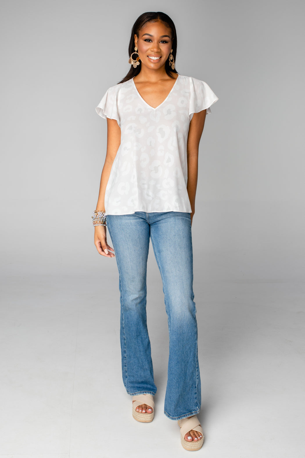 Avril is a Buddy Love classic! She has been around since the beginning and is always a fan favorite. Her v-neckline and flutter sleeves make her flattering for any babe, and she pairs well with just about anything. Add your favorite cut off shorts or denim, and you've got a perfect staple outfit for your closet.