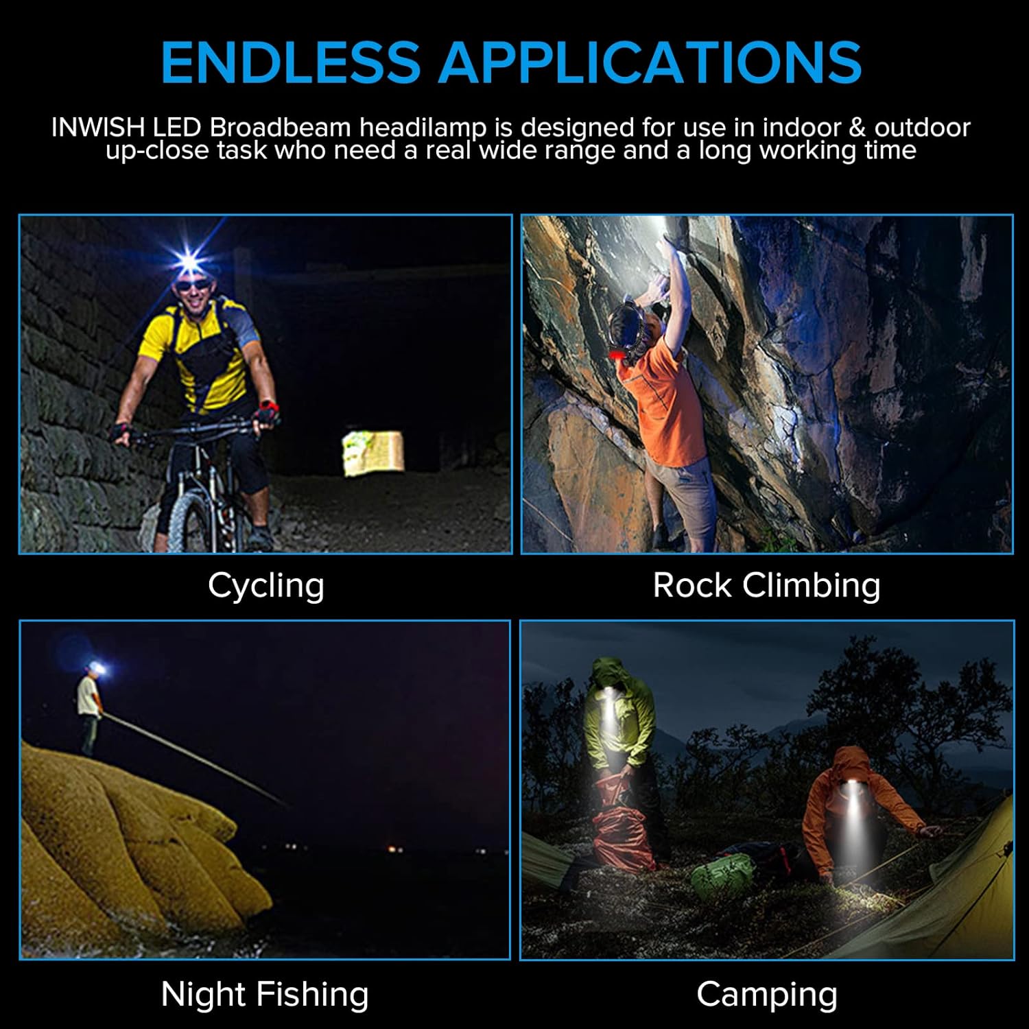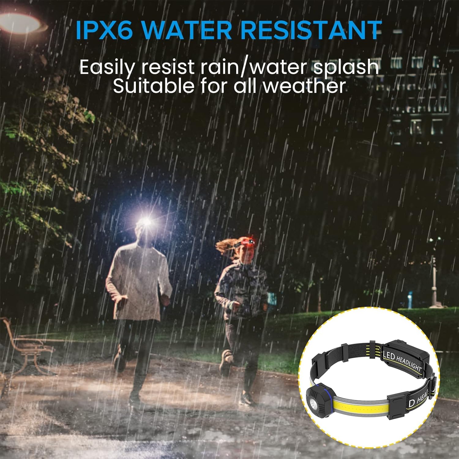 - Lightweight & Waterproof Headlamp: This lightweight headlamp, including the battery, weighs only 4.7 ounces, and the flexible lamp belt can be folded without fear of damage. Fold it and put it in your pocket, making it easier to carry. This waterproof headlamp is IPX6, fully enclosed, preventing water mist and rain from entering, and can adapt to bad weather such as rain. Whenever you wear our LED headlamp, you don't have to worry about a sudden rain. fun and practical.