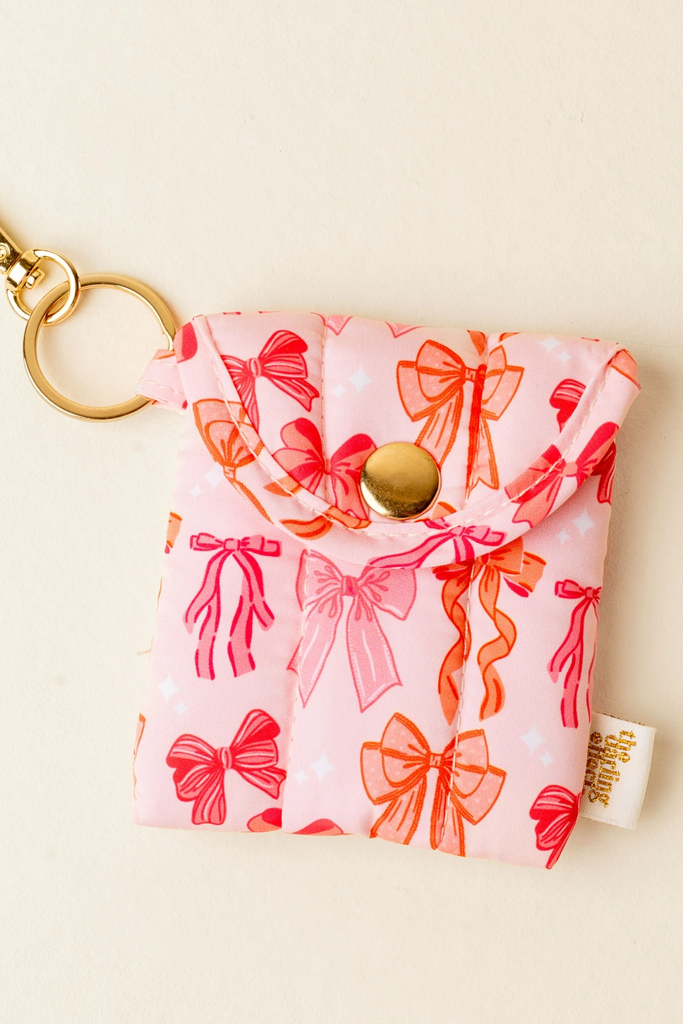Keep your earbuds safe and stylish with our Puffy Earbud Case Keychain! Perfectly designed to fit most wireless earbuds, this compact and travel-friendly case offers light protection with its quilted material. The convenient keychain clip lets you easily attach it to your bag or keys, while the button snap closure ensures your earbuds stay securely stored.