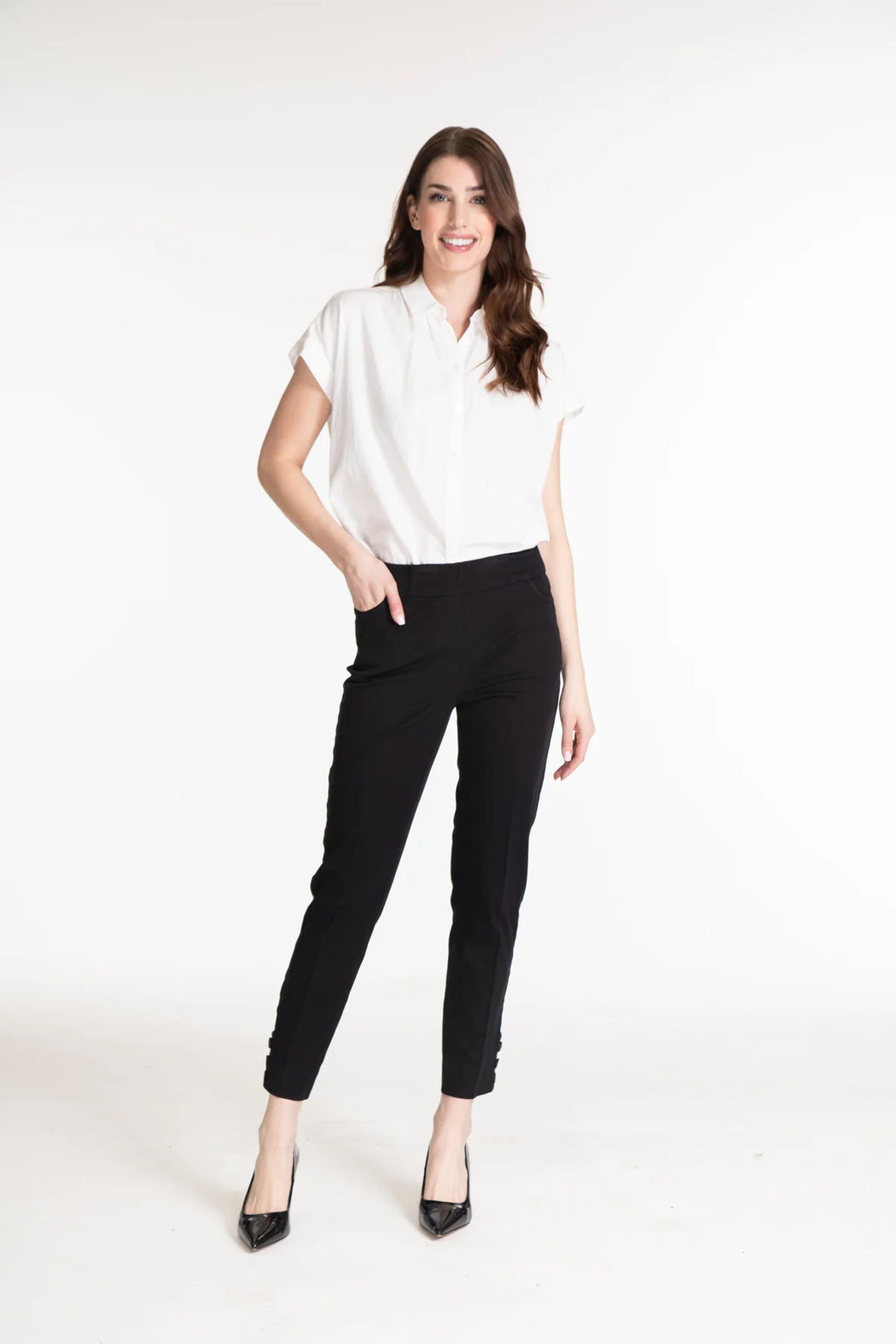 PULL-ON 3-BUTTON HEM VENT ANKLE PANT - NAVY ONLY