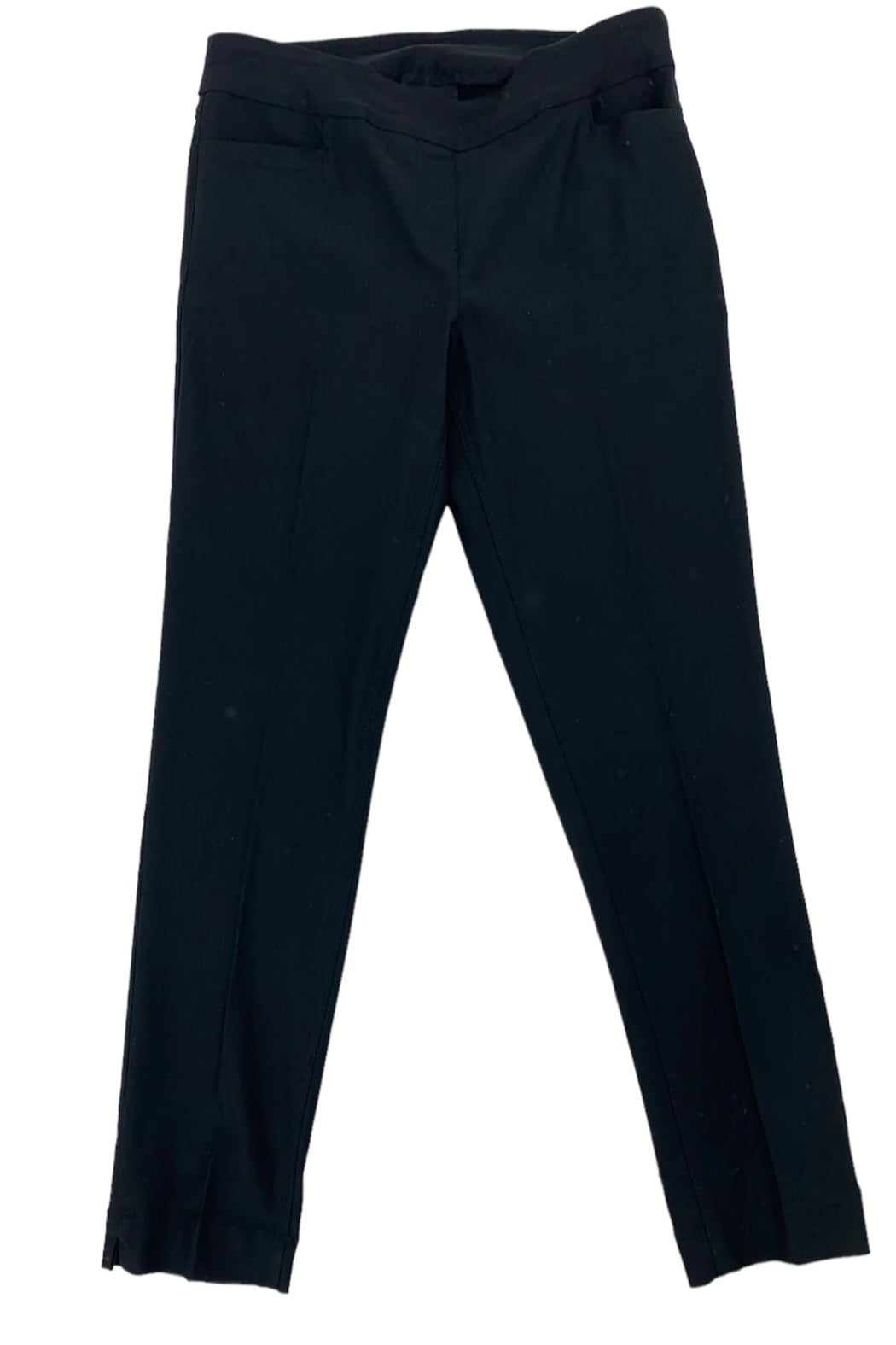 These slim pants with pockets in front and back are a little softer than other Multiples pants. The narrow legs each have a short slit, and the front has a faux fly. This slightly dressy L pocket pant is made of wrinkle-resistant twill.