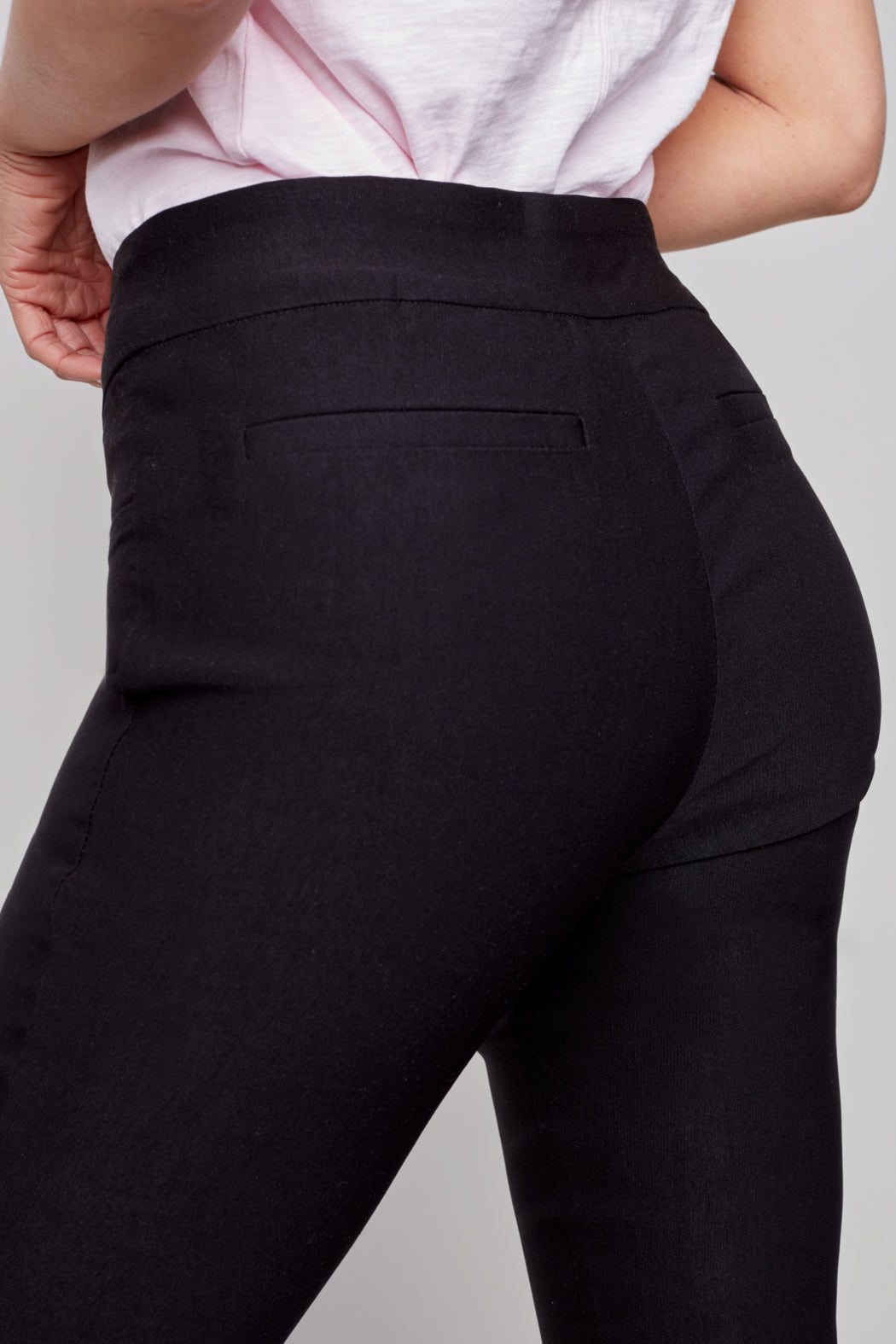 Comfortable and fashion forward, these pull on cropped pants come in three colorways that compliment any wardrobe. Constructed with a mix of rayon and spandex these pants move with you for all day comfort, pair with button up blouse for work or a basic t-shirt and sneakers for a casual look.
