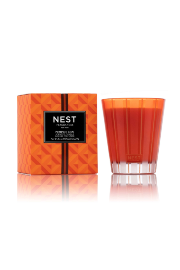 Pumpkin Chai creates a cozy autumn ambience with a blend of wild pumpkin, spicy Masala chai, cardamom, ginger, and cinnamon. 8.1oz
