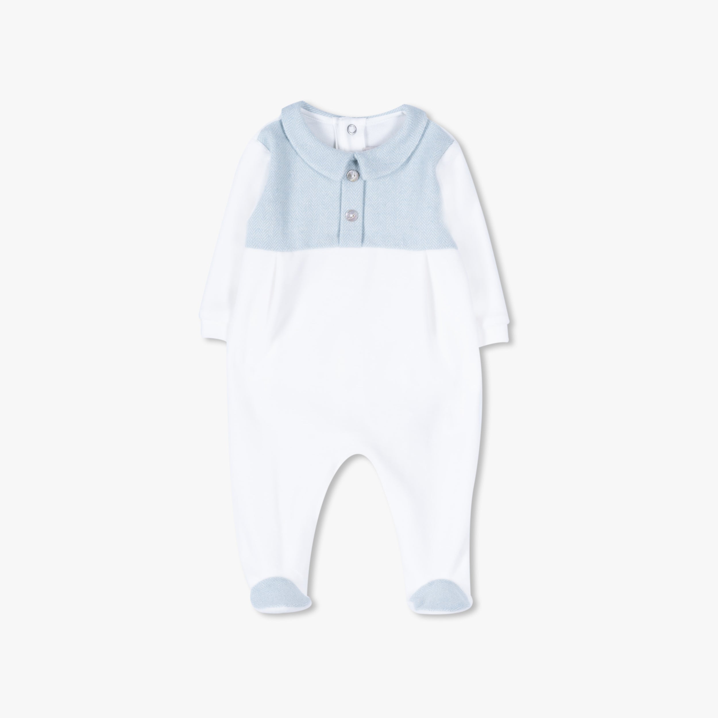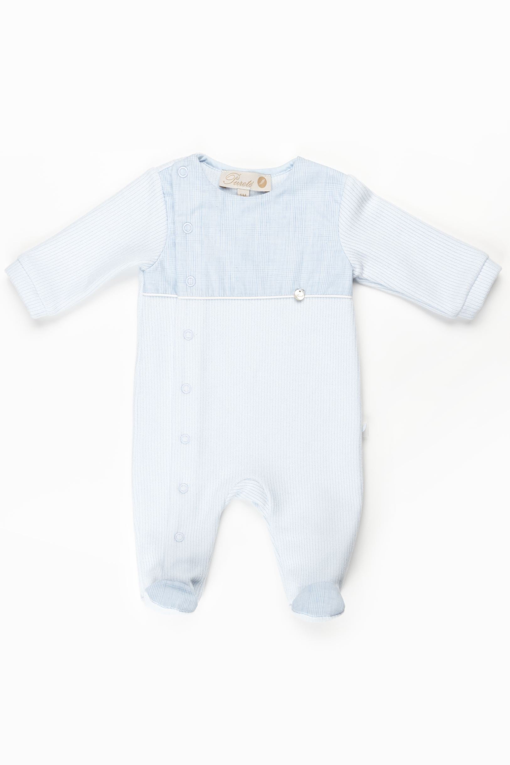 PURETE baby footie - Find the perfect blend of comfort and durability with the PURETE High-Quality Blue Velour Footie. Soft baby clothing you'll love.
