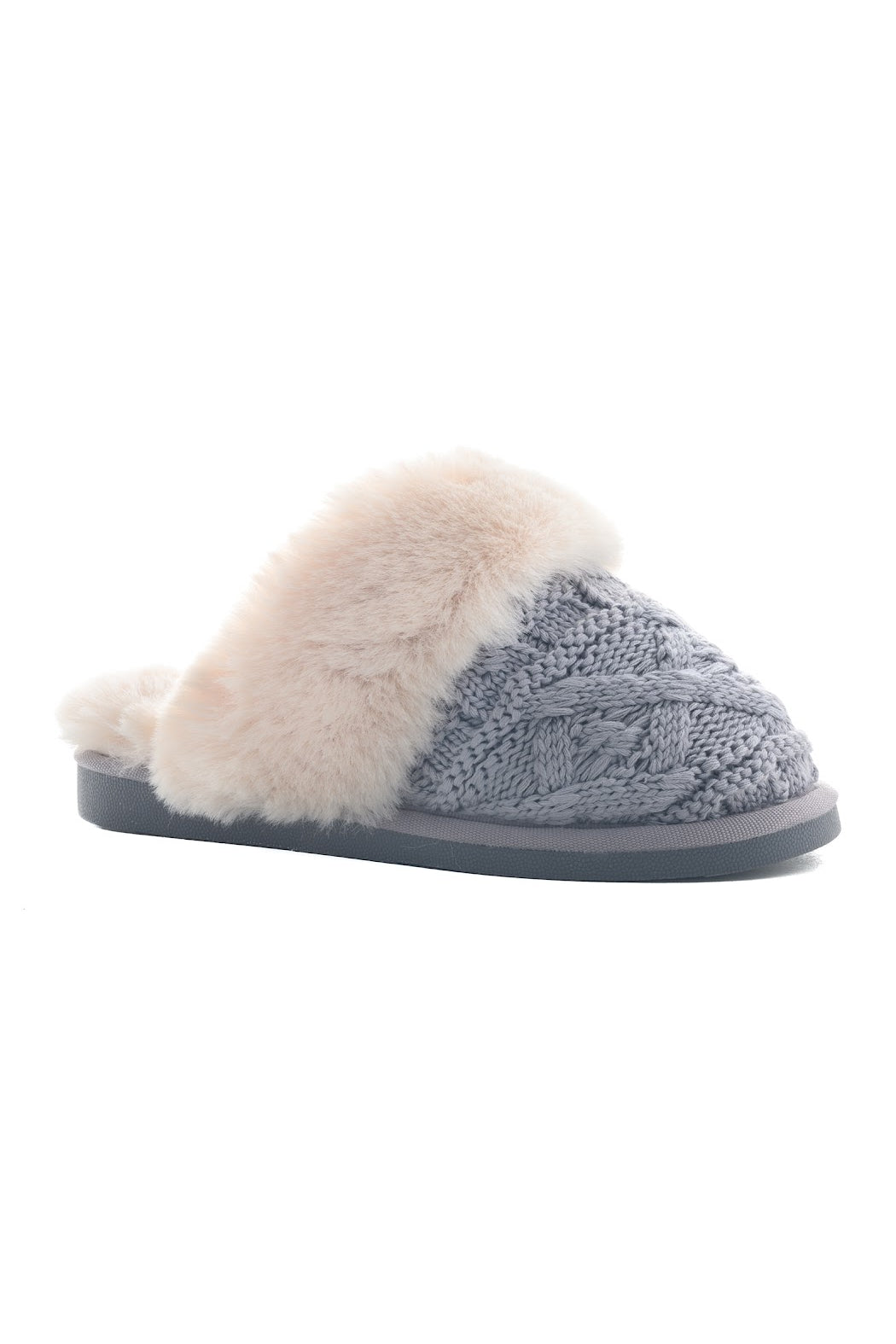 Treat your feet to fuzzy-feeling sensation. Cable knit design on the outside and furry-soft inside creates a slipper ready to accompany you on your comfy days. Hard bottom sole and open-back design makes this an easy slip-in house shoe.