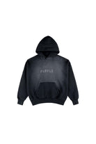 The Purple Brand Studded Scratch Hoodie adds a touch of edgy style to your wardrobe. Made from black heavyweight fleece, it features a large kangaroo pocket, ribbed cuffs and hem, and an oversized fit. The Purple Brand logo, adorned with hotfix studs, adds a playful and eye-catching detail.