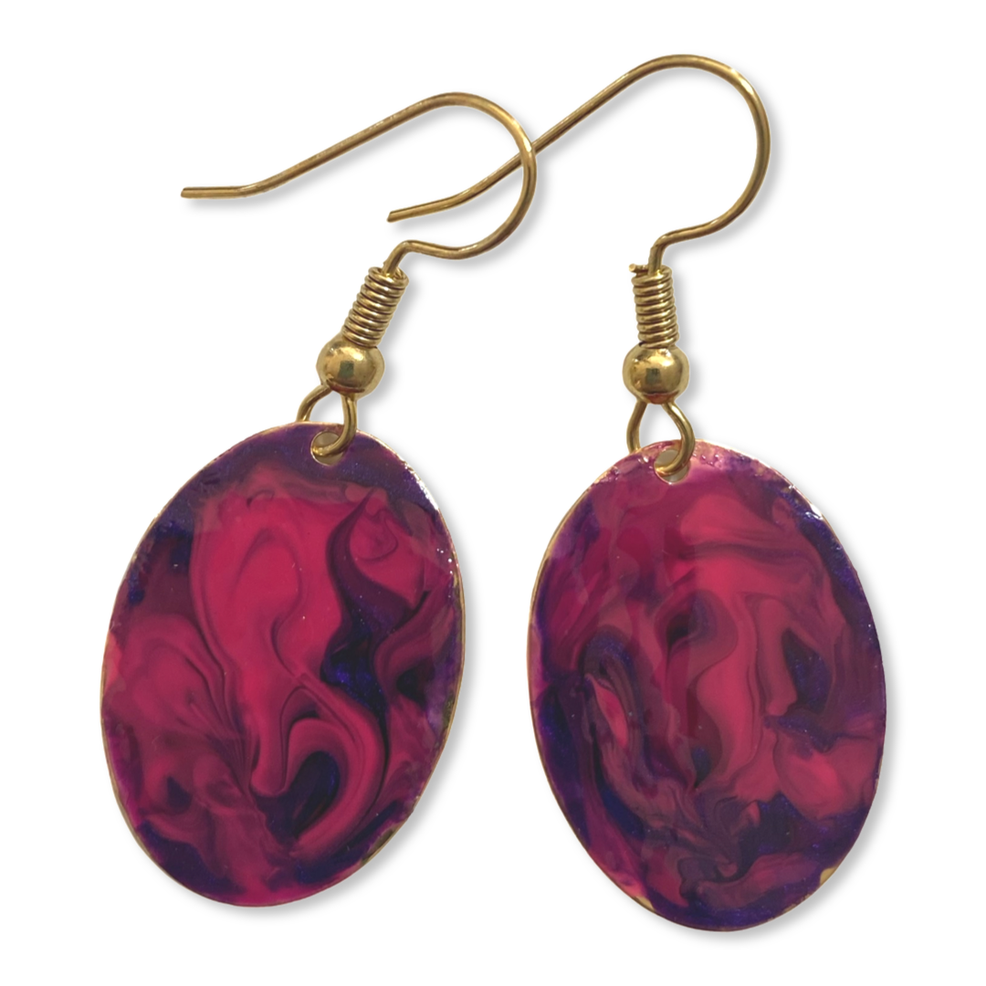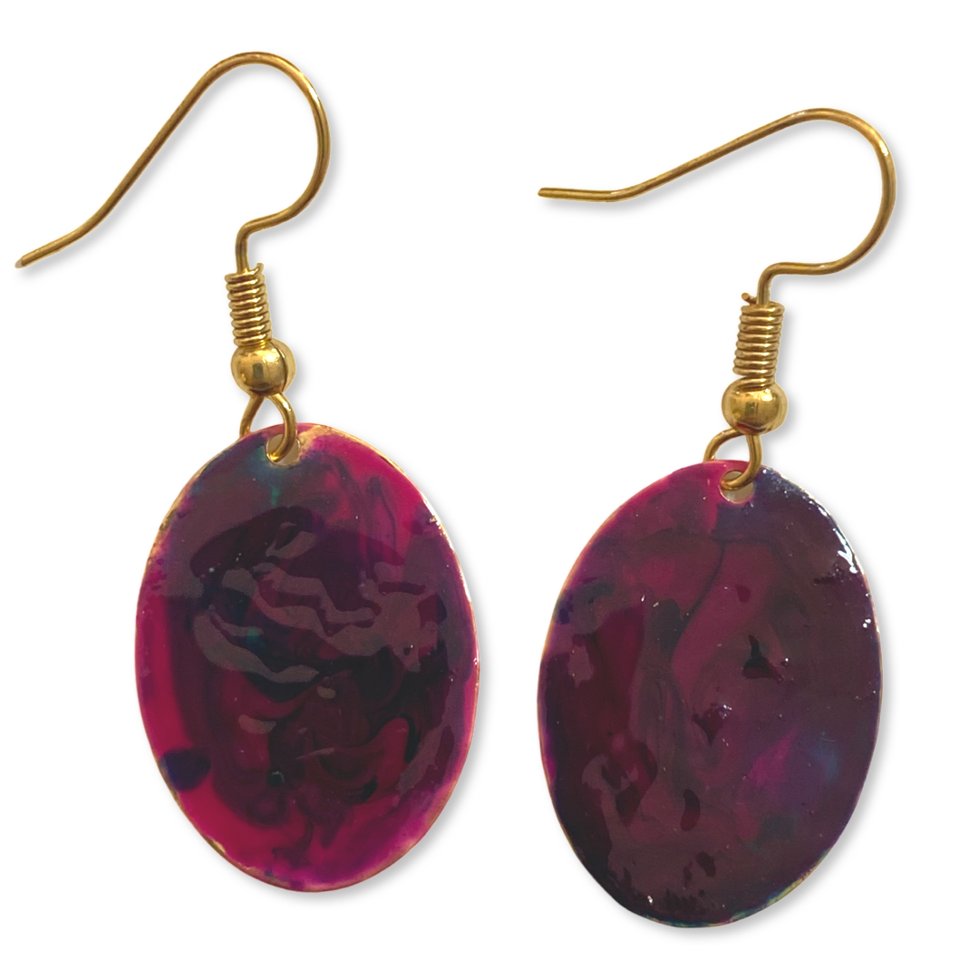These hand painted purple marbleized mini oval earrings are from our signature collection of Lures of Love Earrings.