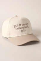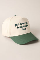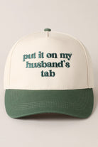 Make a bold and playful statement with our "Put It on My Husband's Tab" Embroidery Cap. This structured six-panel cap features a curved brim and is crafted from high-quality fabric, ensuring both comfort and durability. The adjustable strap at the back provides a perfect fit for all-day wear. Available in multiple color combinations, it's perfect for a fun girls' night out, brunch, or as a cheeky gift.