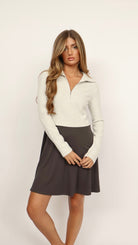 Get ready to fall in love with our Quinn Mix Media Dress! This dreamy combo features our beloved ribbed zip-up stretch cotton top paired with an ultra-soft flare skirt, making it the perfect outfit for any occasion. The dress hits just the right spot to create a stunning hourglass shape while effortlessly hiding any little imperfections.