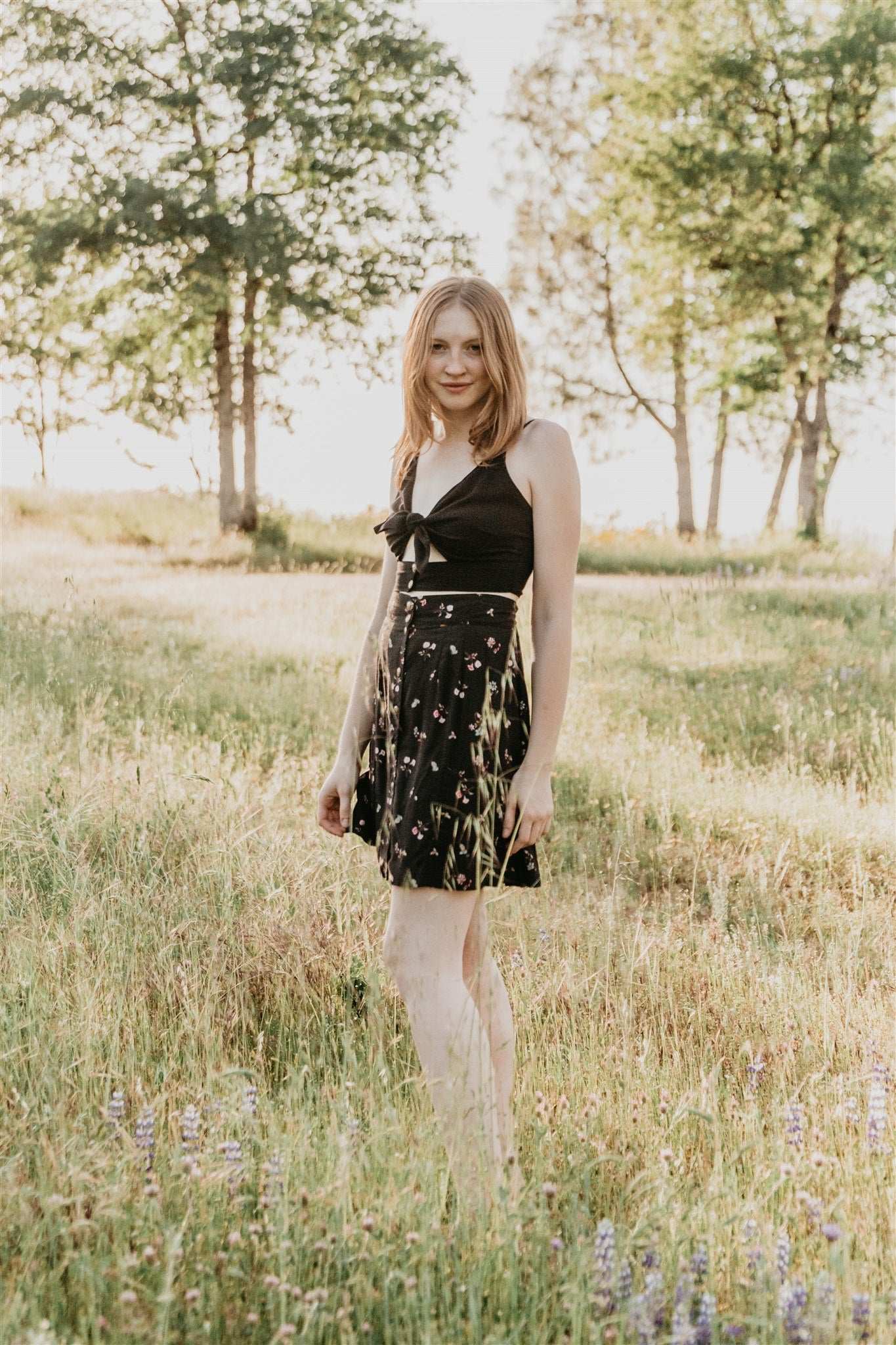 Made from 100% a vintage rayon challis in a muted black with small flowers.