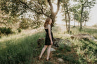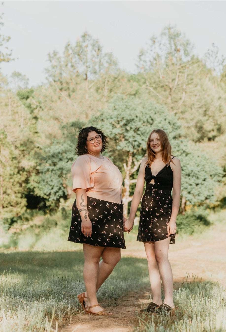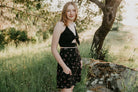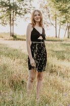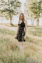 Made from 100% a vintage rayon challis in a muted black with small flowers.