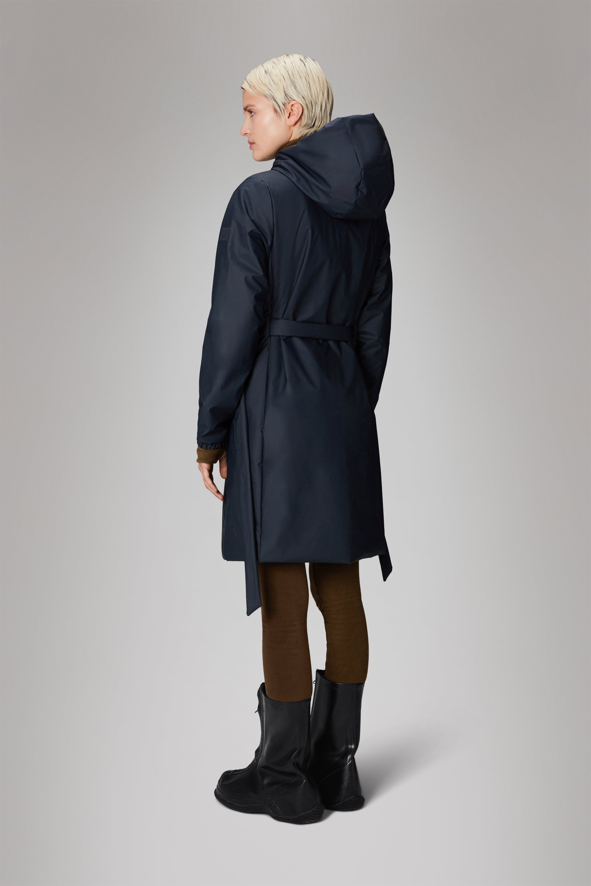 Rains Lohja Long Insulated Curve Jacket in Navy