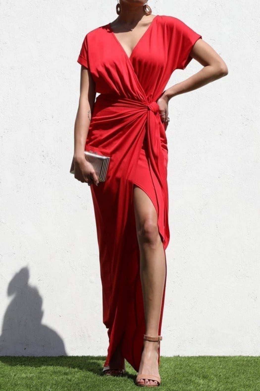 Unapologetically bold, the Rebel Rose Dress brings fierce energy to any room. With a plunging neckline and a razor-sharp front slit, this daring maxi was made for breaking rules and turning heads. Cut in a fluid, high-impact fabric with attitude in every stitch, it’s the ultimate statement piece for nights that don’t end before dawn.