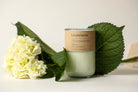 The candle's label is made of 100% recycled paper and designed to be easily removed in order for the recycled glass jars to easily be reused once the candles have burned away. Just pull up the sticker on the side of the jar & voila!