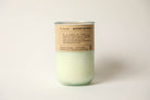 The candle's label is made of 100% recycled paper and designed to be easily removed in order for the recycled glass jars to easily be reused once the candles have burned away. Just pull up the sticker on the side of the jar & voila!