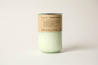 The candle's label is made of 100% recycled paper and designed to be easily removed in order for the recycled glass jars to easily be reused once the candles have burned away. Just pull up the sticker on the side of the jar & voila!