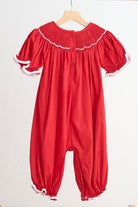 Get ready to smock the town red with this adorable hand smocked girl romper! Made with love and care, this romper features a charming red candy design that will surely sweeten up any occasion. Perfect for playdates, parties, or just lounging around in style. Don't miss out on this one-of-a-kind piece!