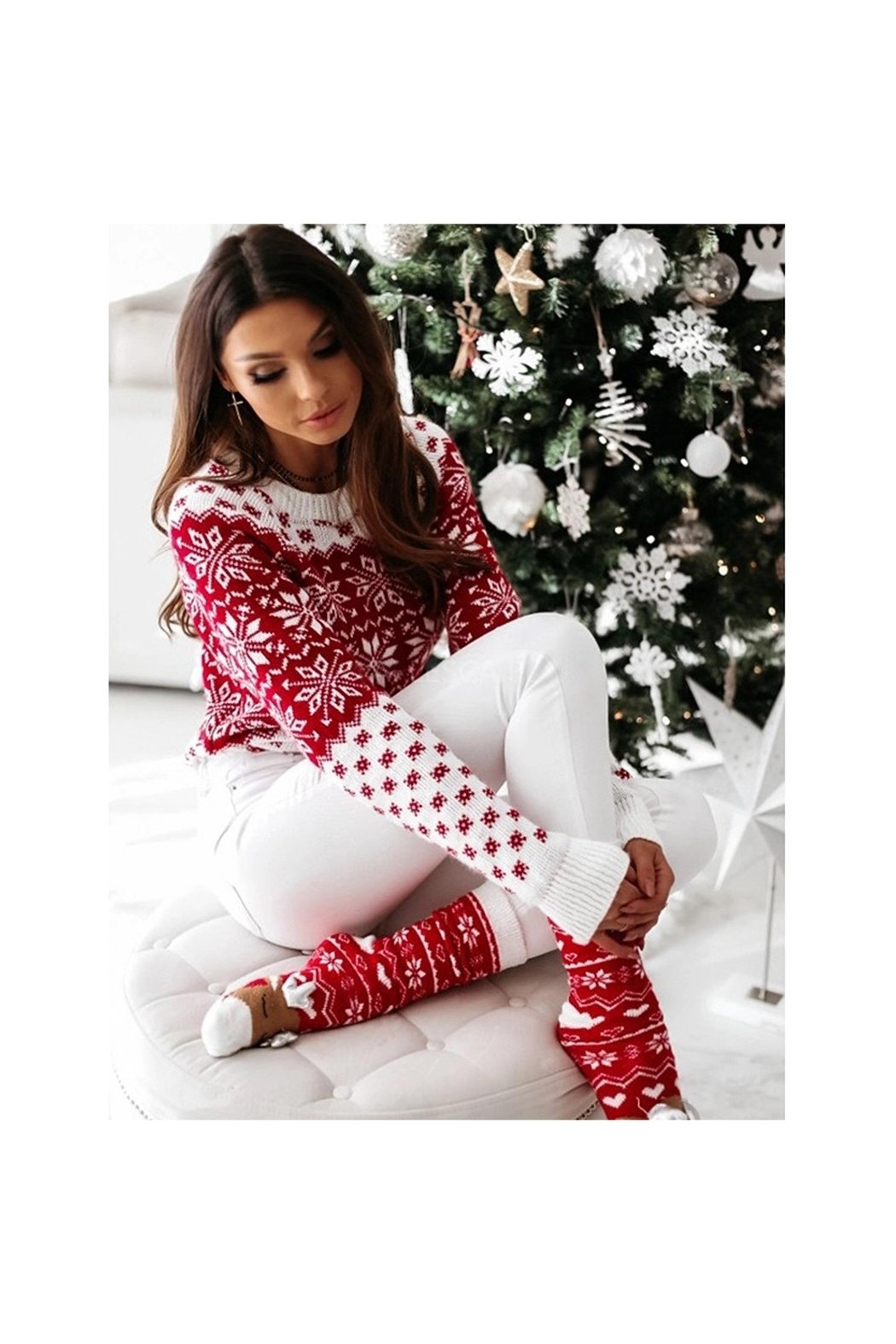 Red & White Christmas Sweater For Women Knitted Full Sleeve Bright & Beautiful