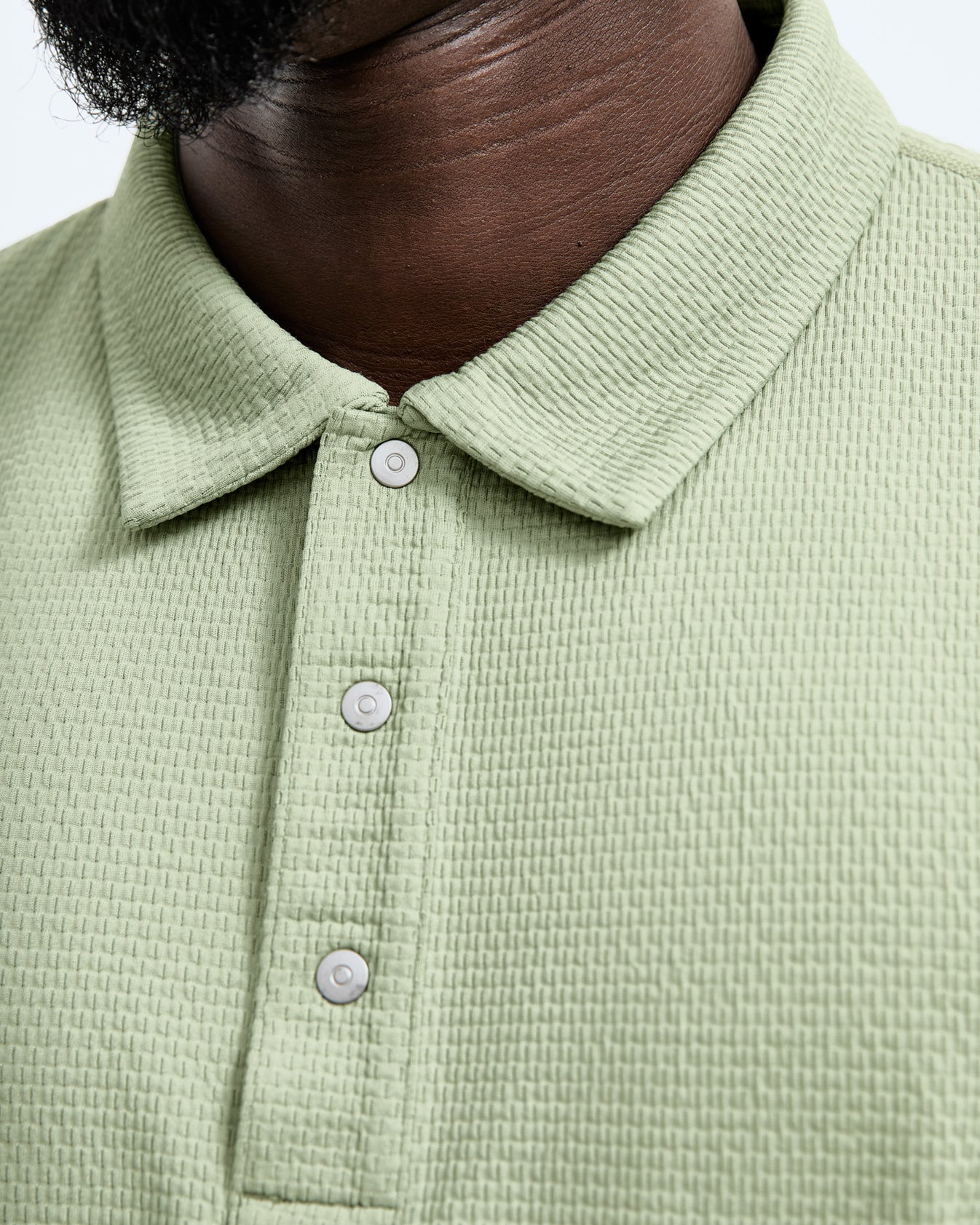 Stay cool and move freely with the Reigning Champ Men's SOLOTEX MESH TIEBREAK POLO. Made with moisture-wicking Solotex® Mesh, this polo offers dynamic stretch and high rebound for superior comfort. With a self-fabric collar, metal snaps, and underarm gussets, this polo is designed for unrestricted movement.