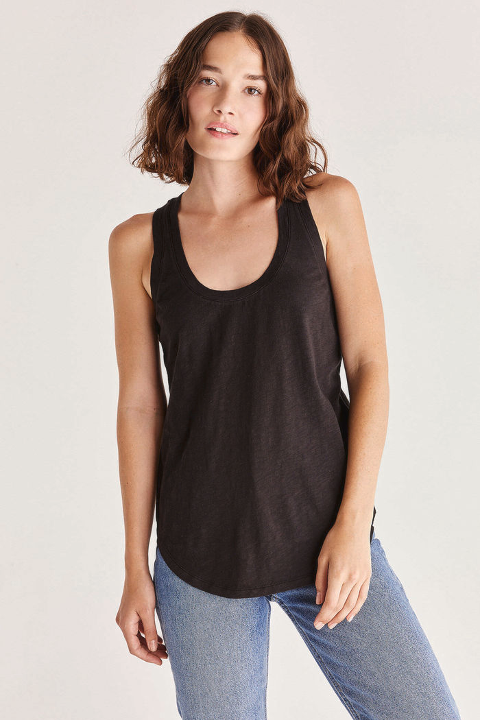 Your customers will feel the comfort they deserve with our Relaxed Slub Tank. Two new colors for high summer will keep you in stock with wear-now items in transitional colors. Fabric Content: 100% Cotton