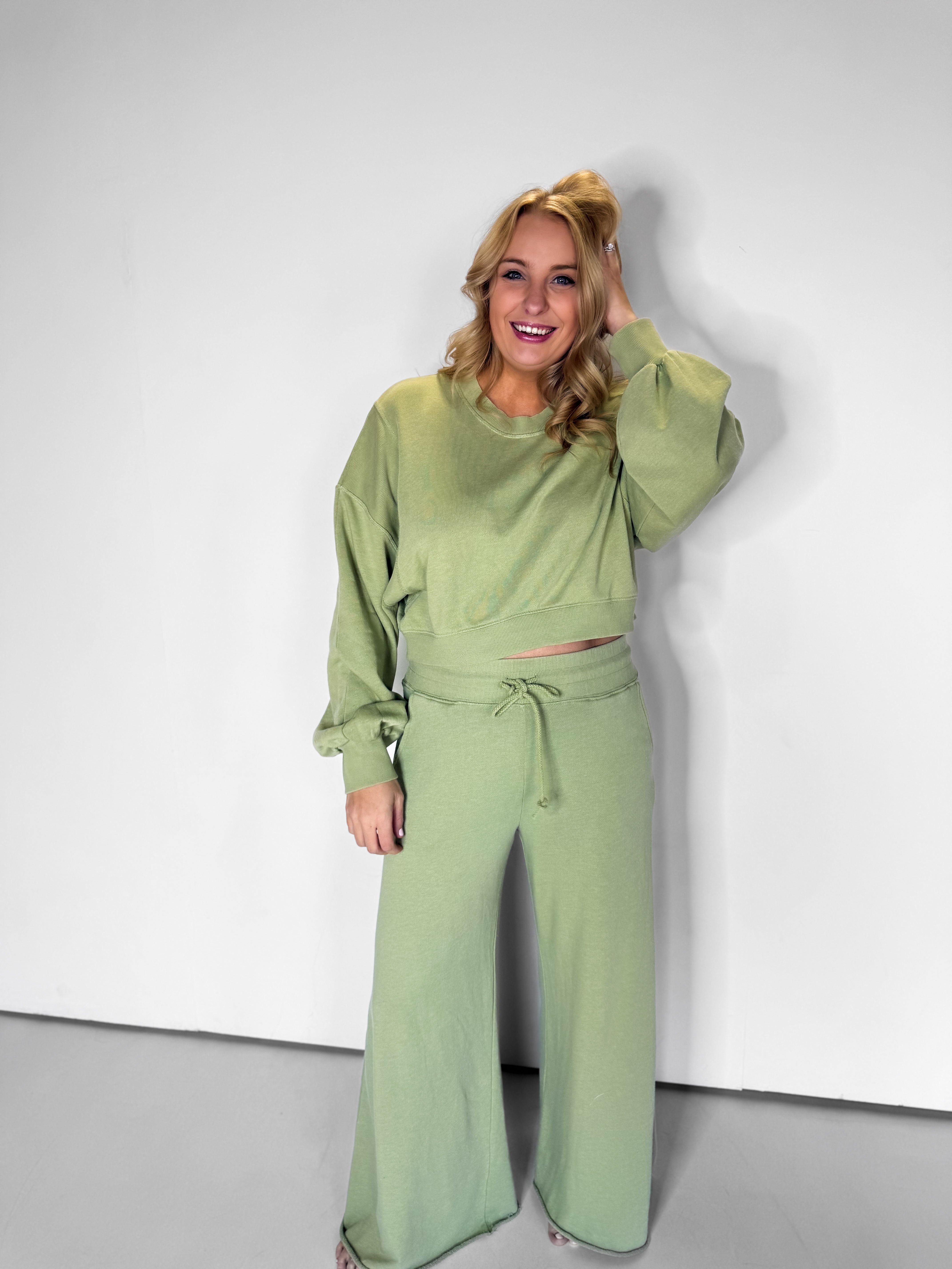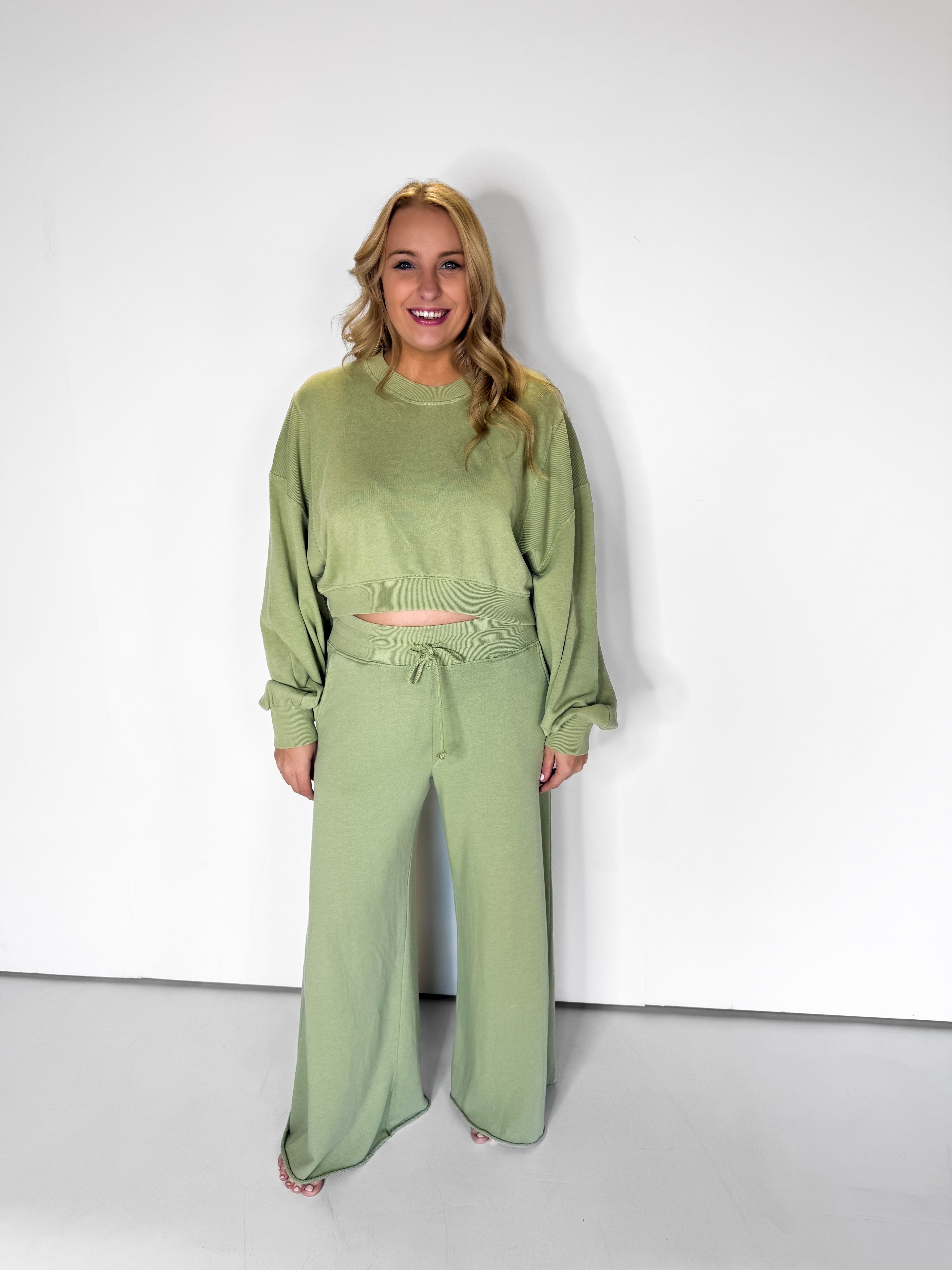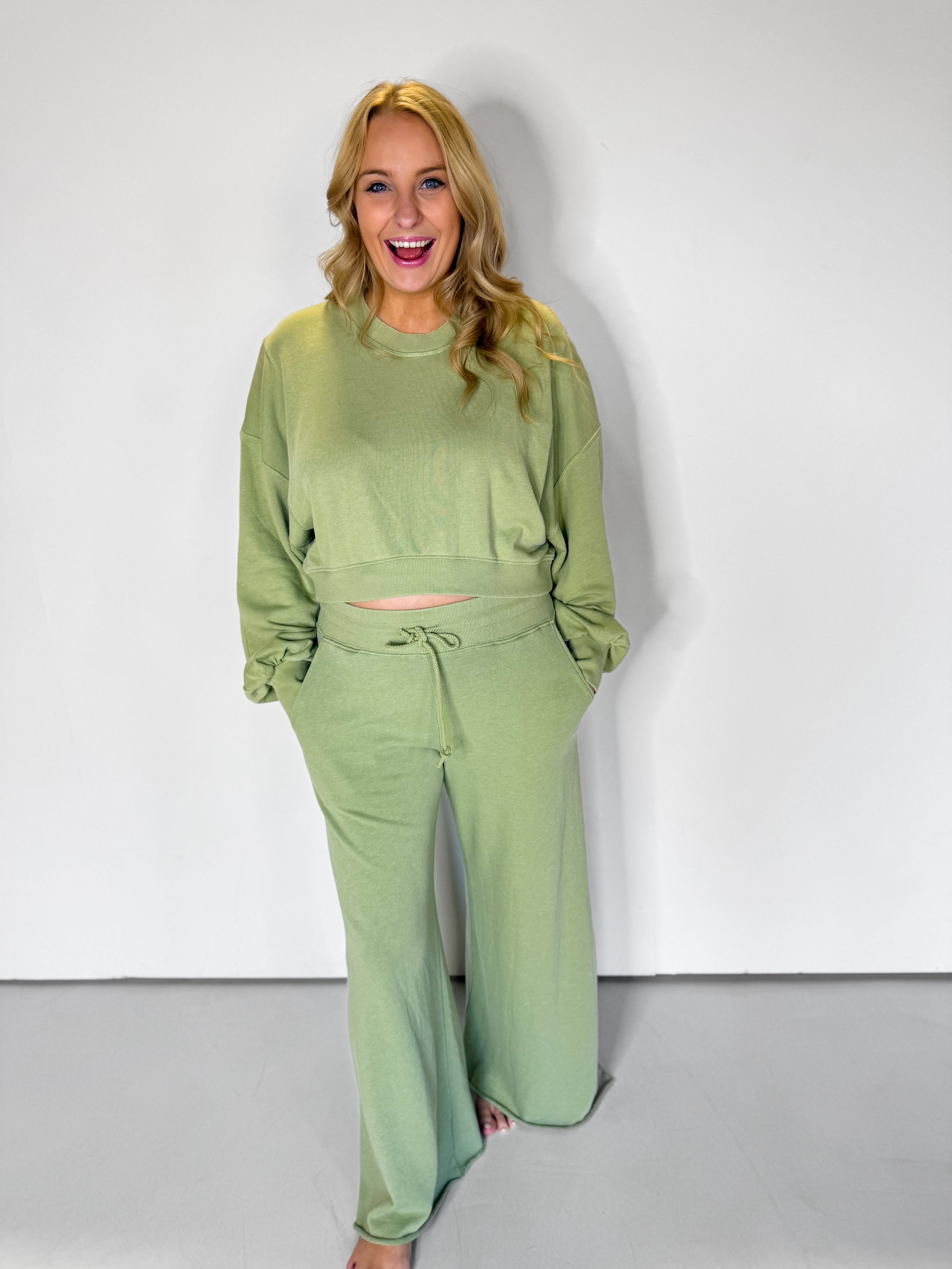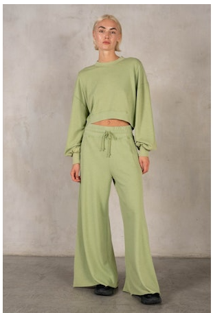 Get ready to lounge in style with the Remy Pant! These rib wide oversized sweatpants are perfect for a casual day out or for lounging at home. The comfortable fit and trendy design make them a must-have addition to your wardrobe. Available in a vibrant green color to add a pop of color to any outfit.