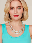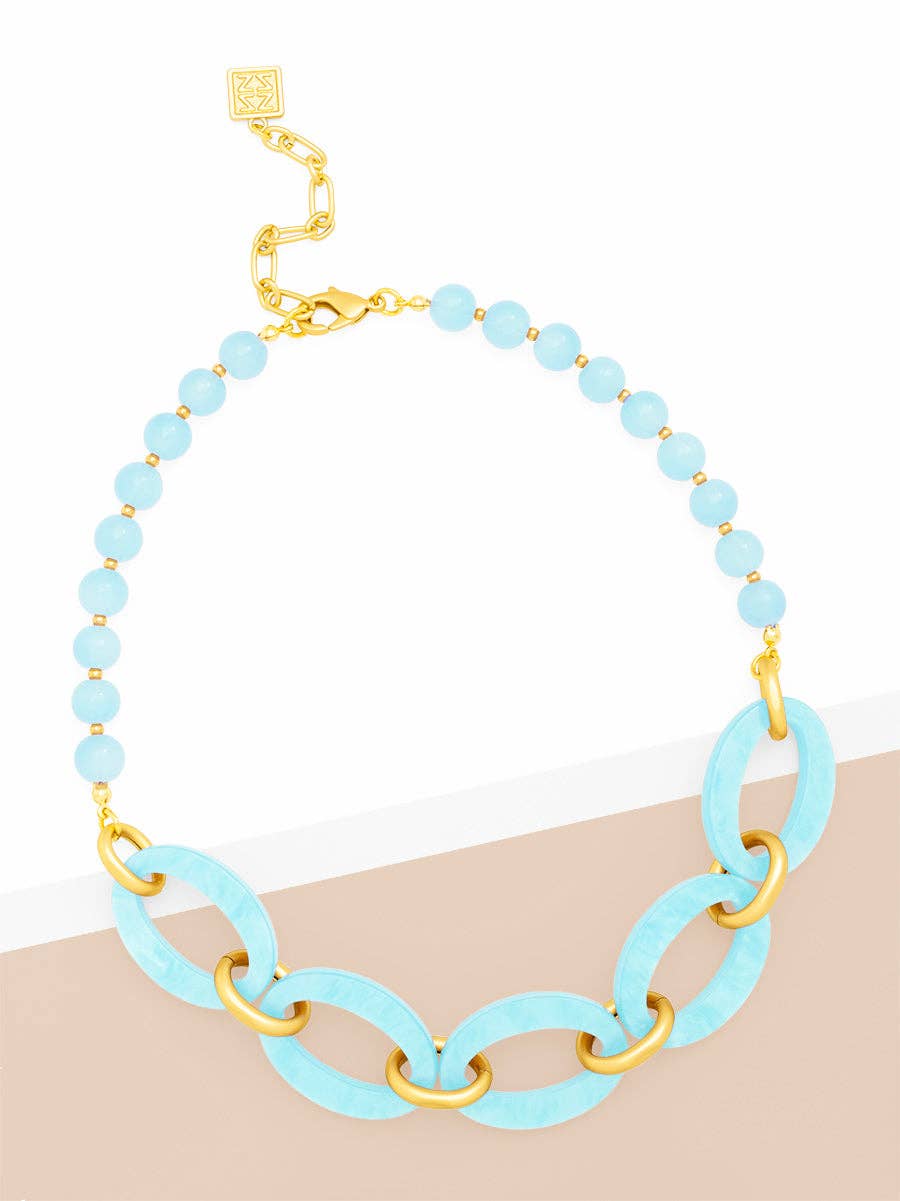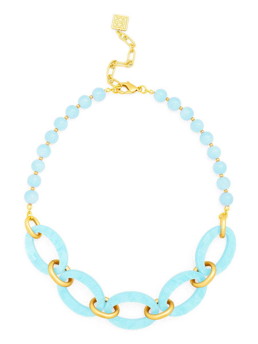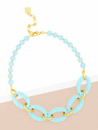 Glassbead collar necklace featuring resin and 18K gold-plated oval links.