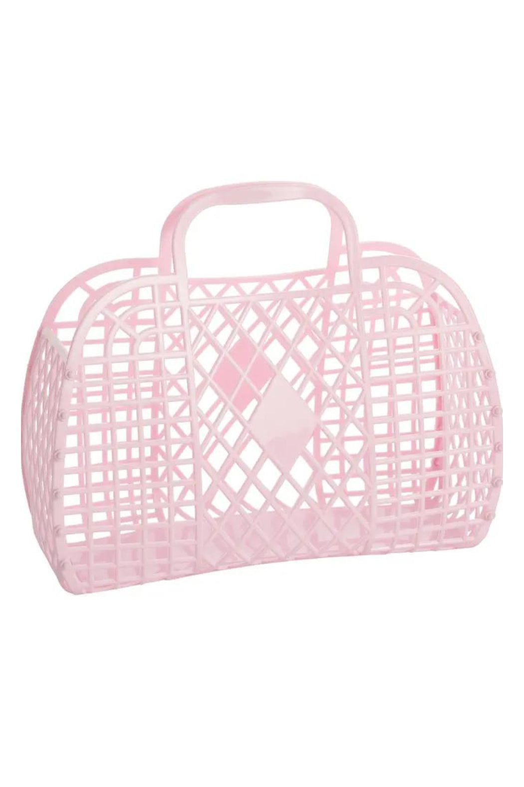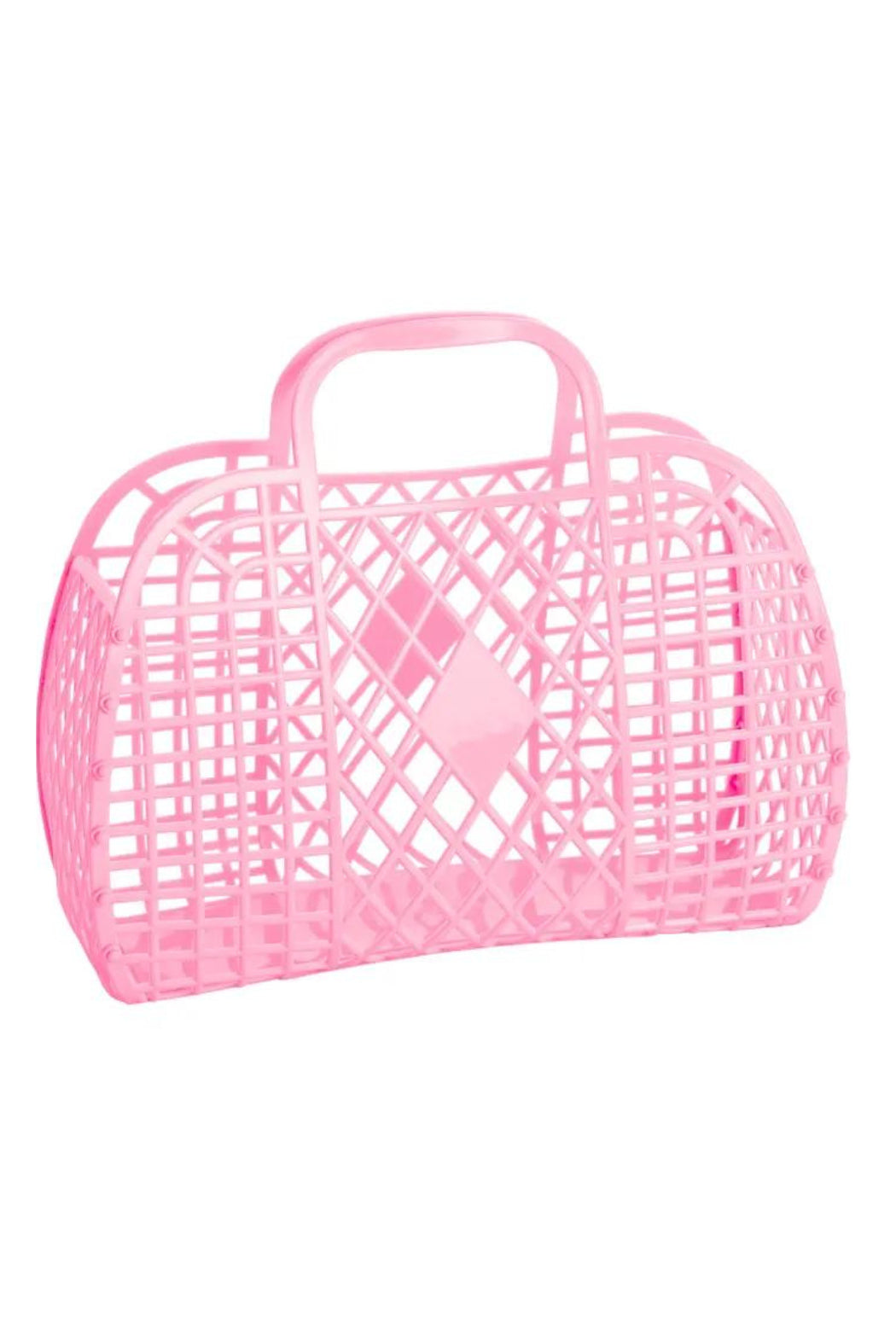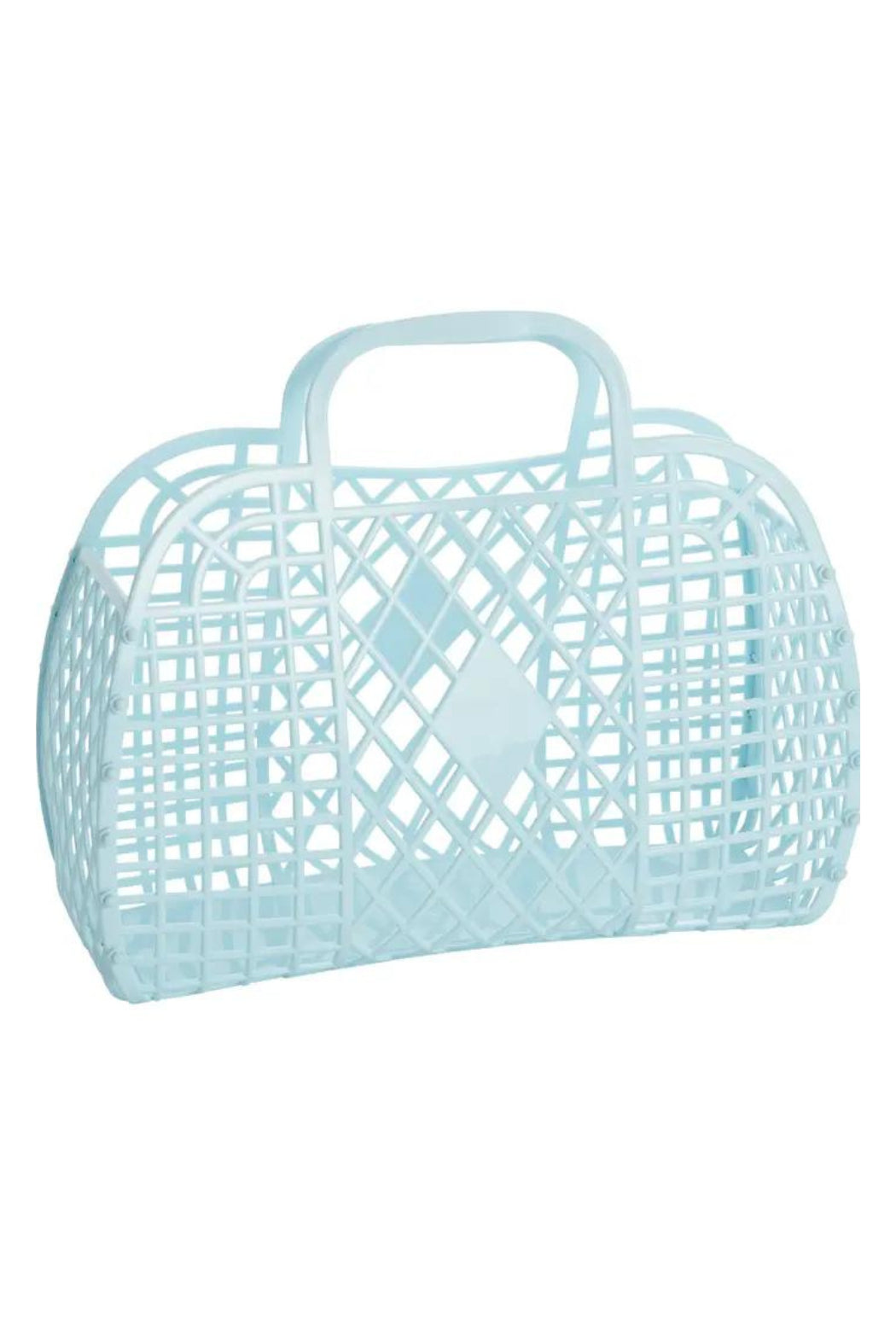 Sun Jellies’ original classic jelly bag, famous in Europe and America. Ideal for summer the large Retro Basket will hold all your daytime essentials – très chic and practical! It’s also a great size for carrying groceries, a knitting project or your kid’s beach toys. With ergonomic handles for comfy carrying it is shipped flat for easy assembly at home and can be gently undone by pushing the buttons back through. The perfect accessory for your holiday suitcase!