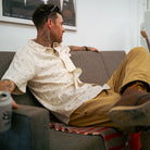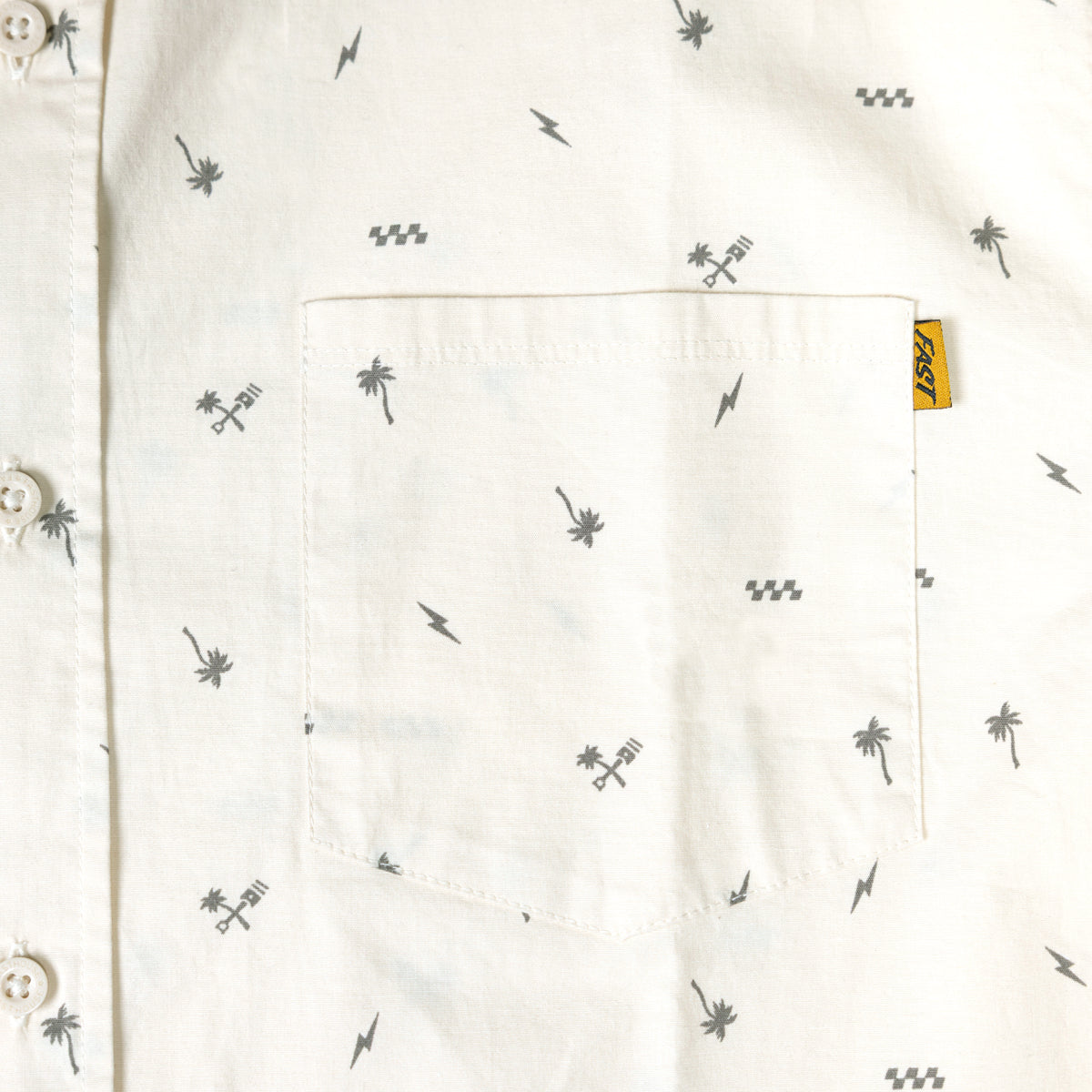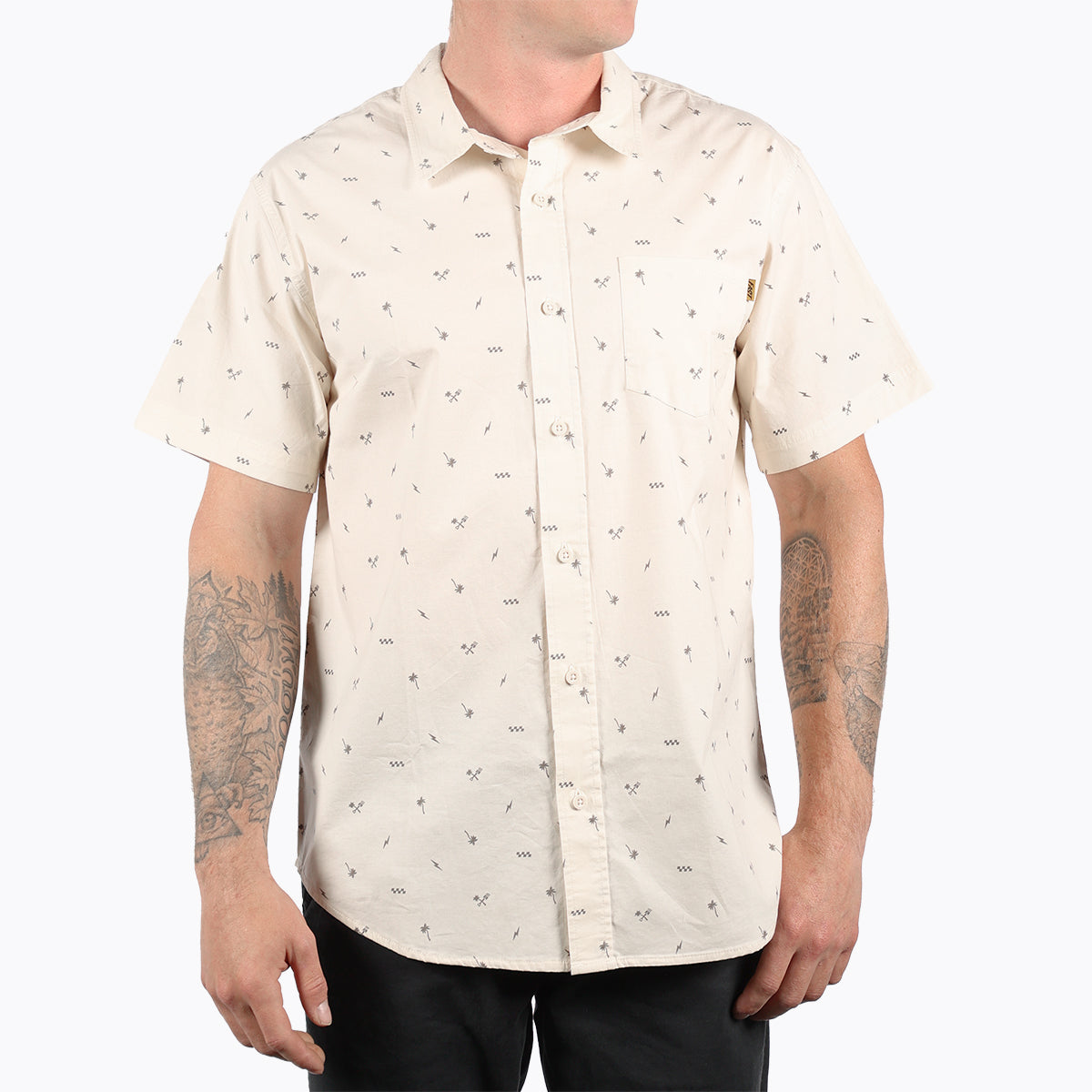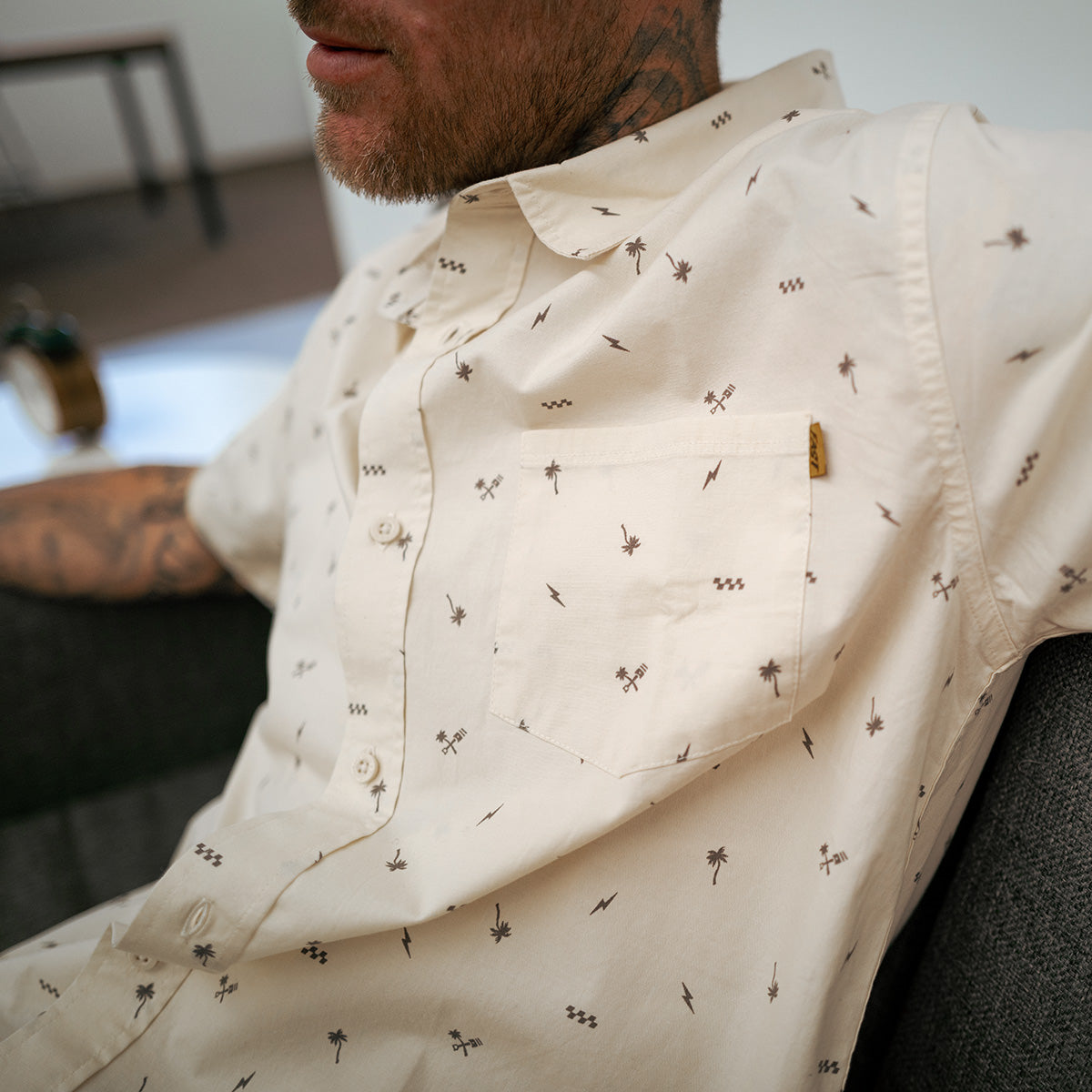 The Retrospect Button-Up blends coastal style with a modern fit, featuring a full button closure, a left chest pocket, and a woven label detail.