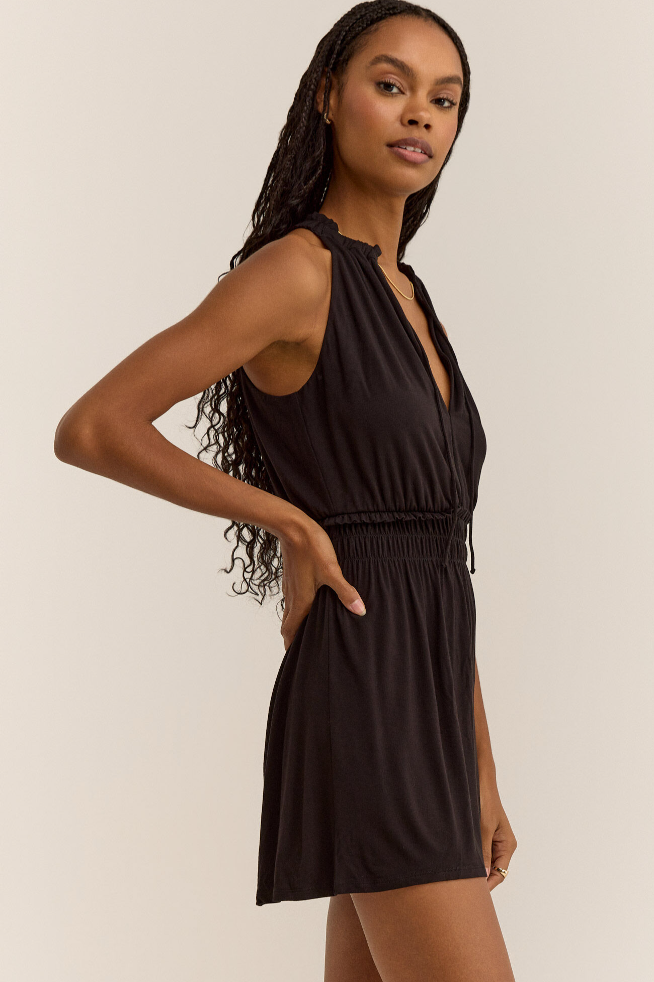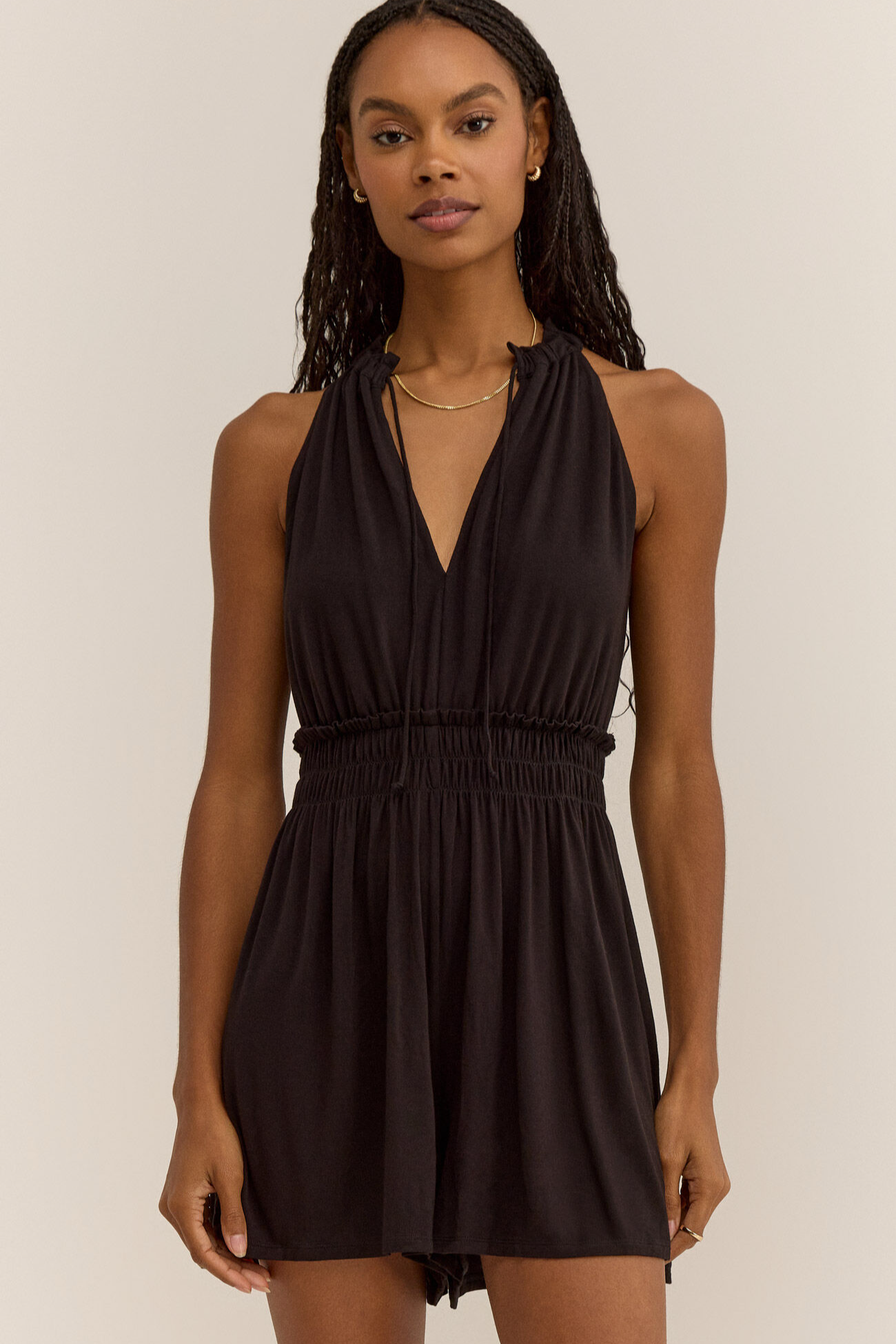 Our newest romper is perfect for warm weather. Our rayon spandex jersey fabric is soft to the touch with the perfect amount of stretch and the ruffle collar is just one of the details we love.